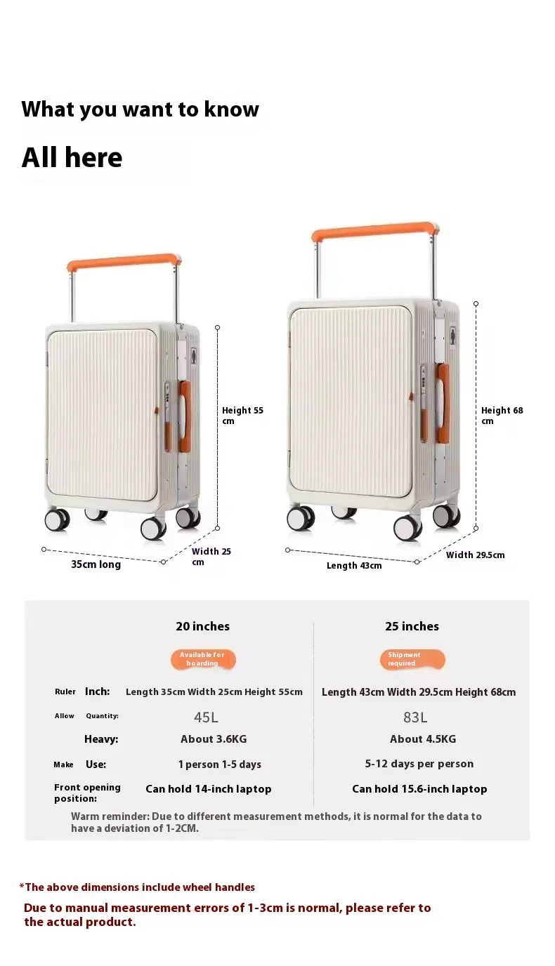 - Versatility: Whether you're heading to a business conference or enjoying a short vacation, this multifunctional trolley case meets all your travel needs.
