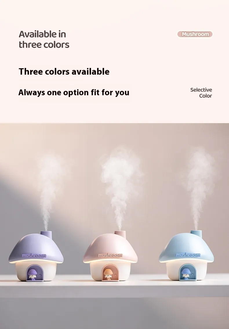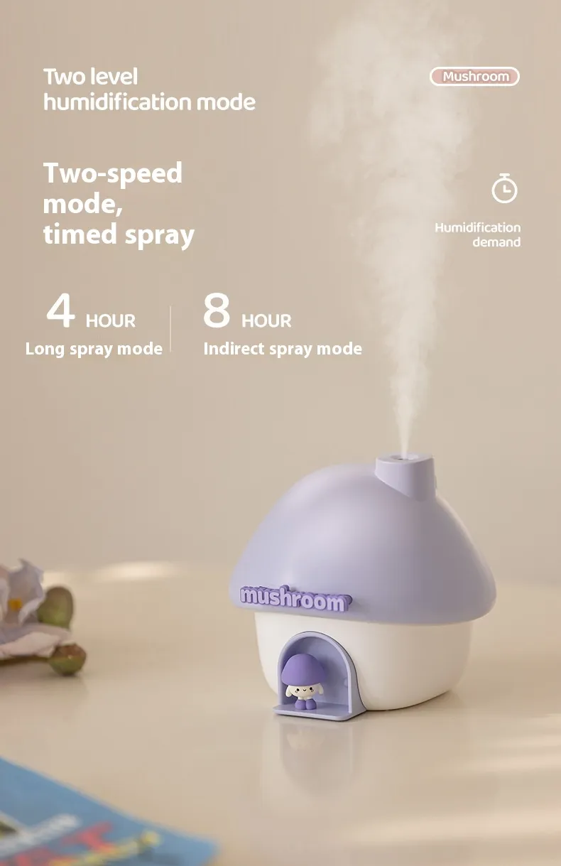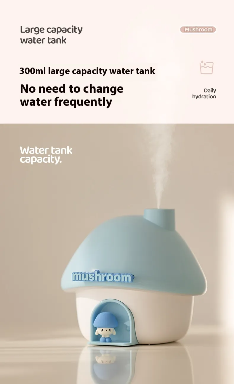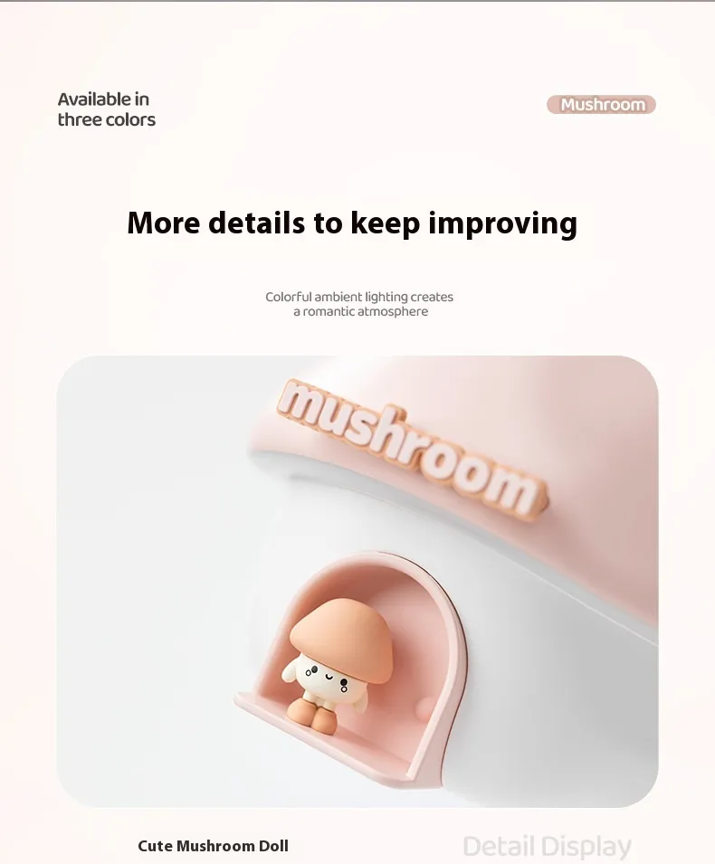 With its charming mushroom design, this humidifier doubles as a decorative piece, adding a touch of whimsy and personality to your room.