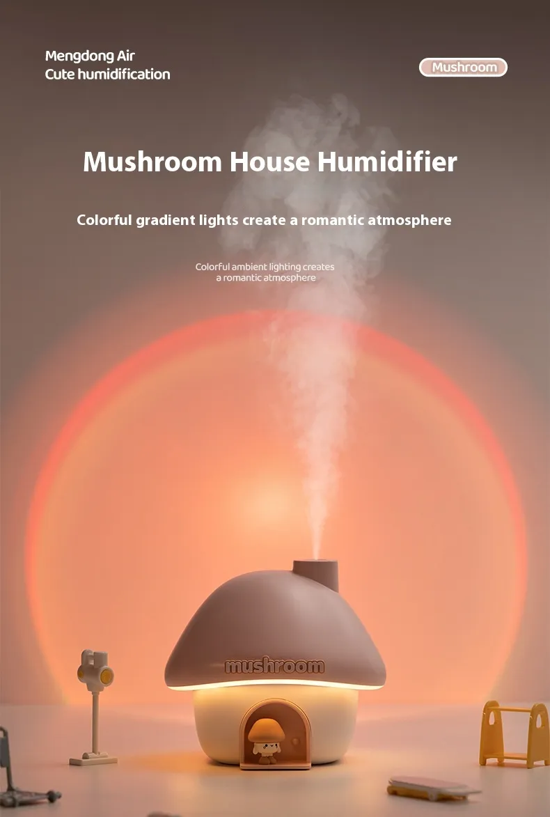 The Mushroom House Ambience Light Mute Humidifier is a whimsical and functional addition to any room. Combining the charm of a mushroom-shaped ambient light with the practicality of a silent humidifier, this device enhances air quality and transforms your environment into a cozy haven. Perfect for bedrooms, nurseries, living rooms, or offices, this humidifier is as delightful as it is practical.