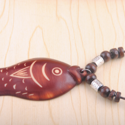 National style antique wooden necklace female resin fish long sweater chain pendant linen Pendant