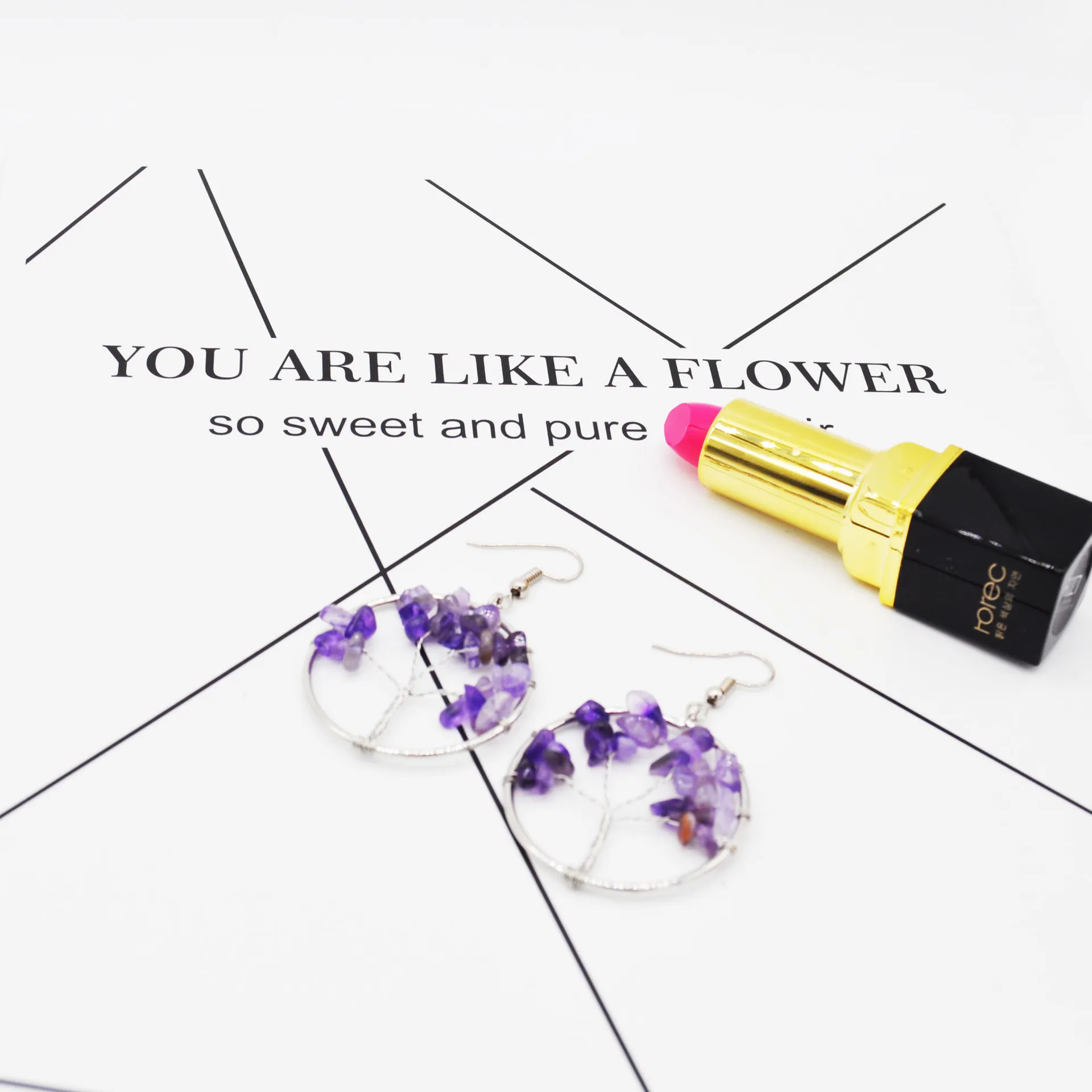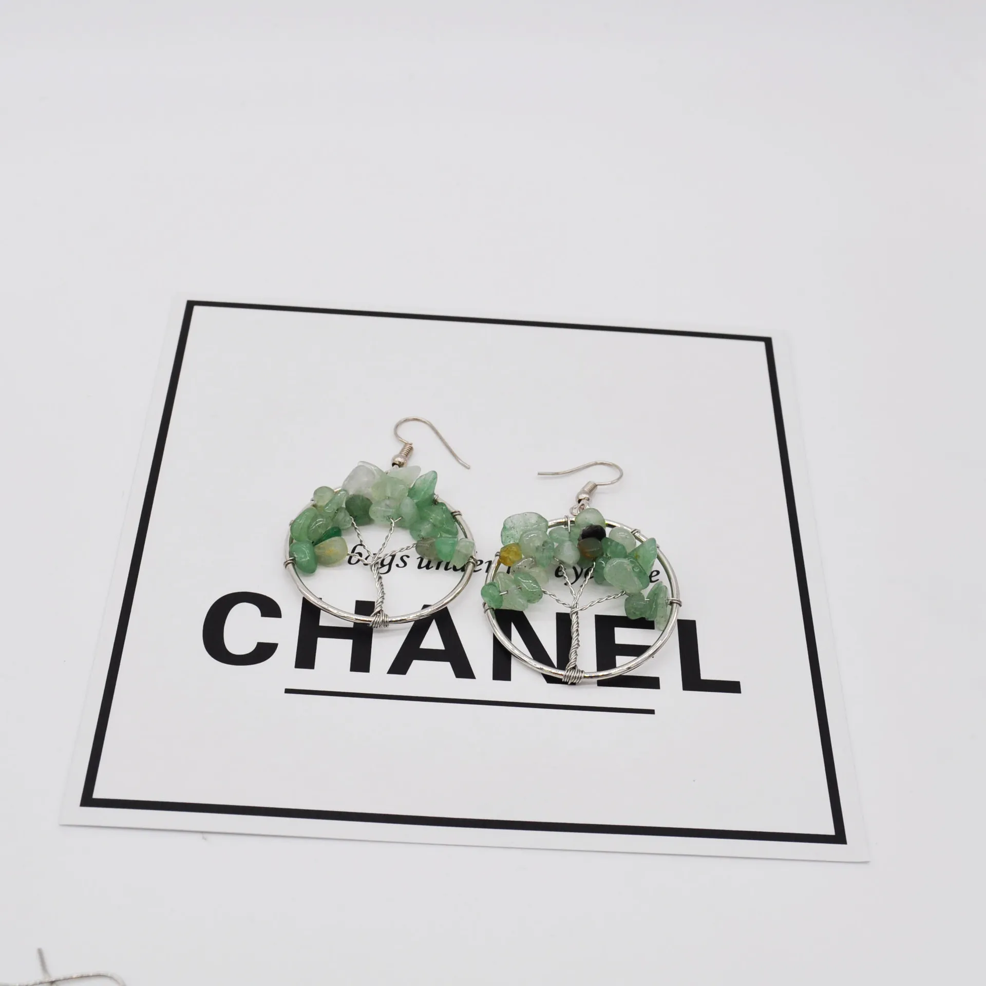 Natural Crystal Crushed Stone Tree Wishing Tree Earrings Crystal Tree Earrings Jewelry
