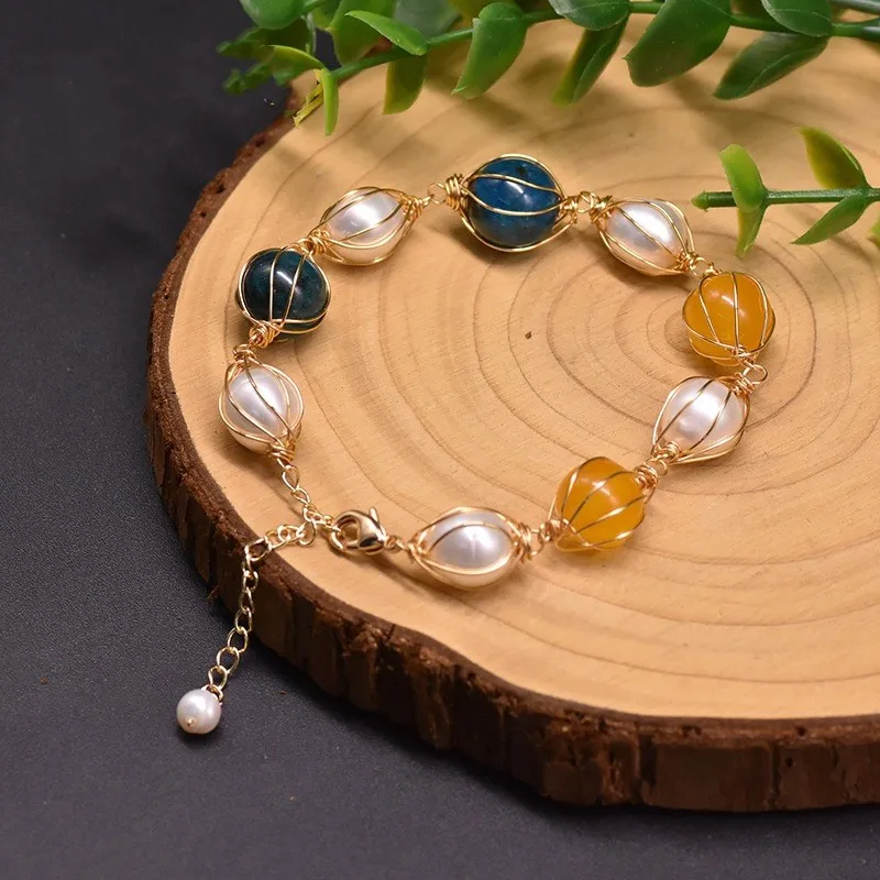 Why Choose the Natural Freshwater Pearl Blue Crystal Stone Yellow Jade Bracelet?