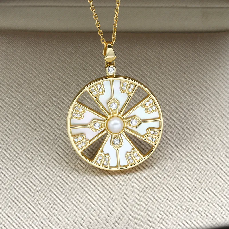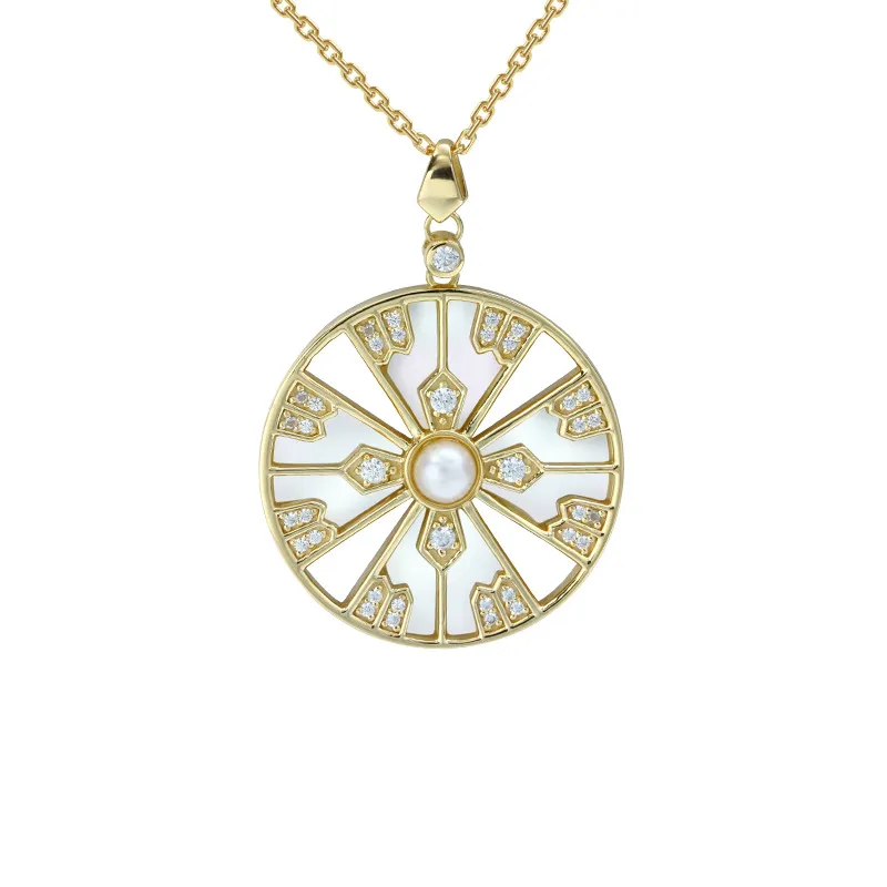 Natural Pearl White Shell Zircon Pendant