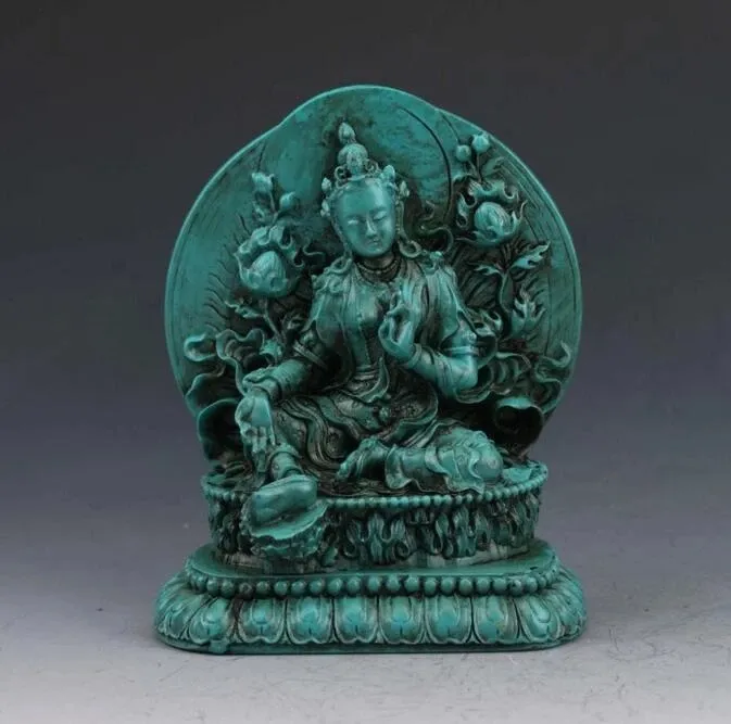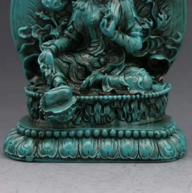 Add a touch of spiritual elegance to your living room or study with this statue. Its natural raw turquoise and intricate craftsmanship make it a captivating conversation piece that promotes positive energy and spiritual healing.