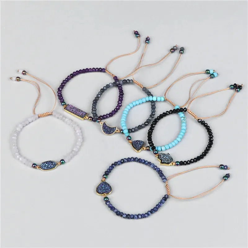 Natural Stone Woven Bracelet Mixed Shape Beads Bracelet Quartz Adjustable Rope Bracelets For Men Women
