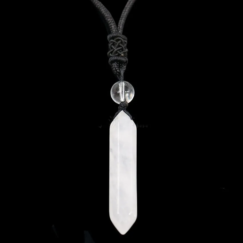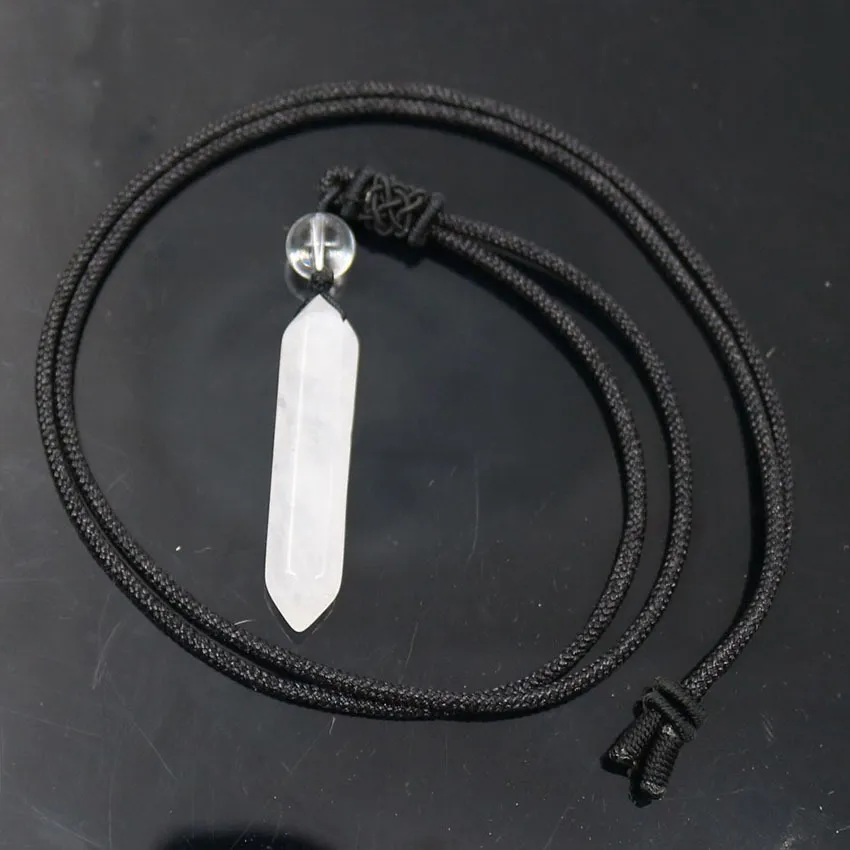 Natural White Crystal Hexagon Prism Double-pointed Hand-woven Personalized Pendant Necklace