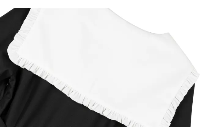 The standout feature of the Navy Sailor Dress is the iconic sailor collar, which adds a touch of vintage nautical charm. The contrasting white piping and bold design make the collar a statement piece, giving the dress its classic and distinctive look. This traditional design element evokes the nautical uniforms of the early 1900s, offering a timeless and elegant style.
