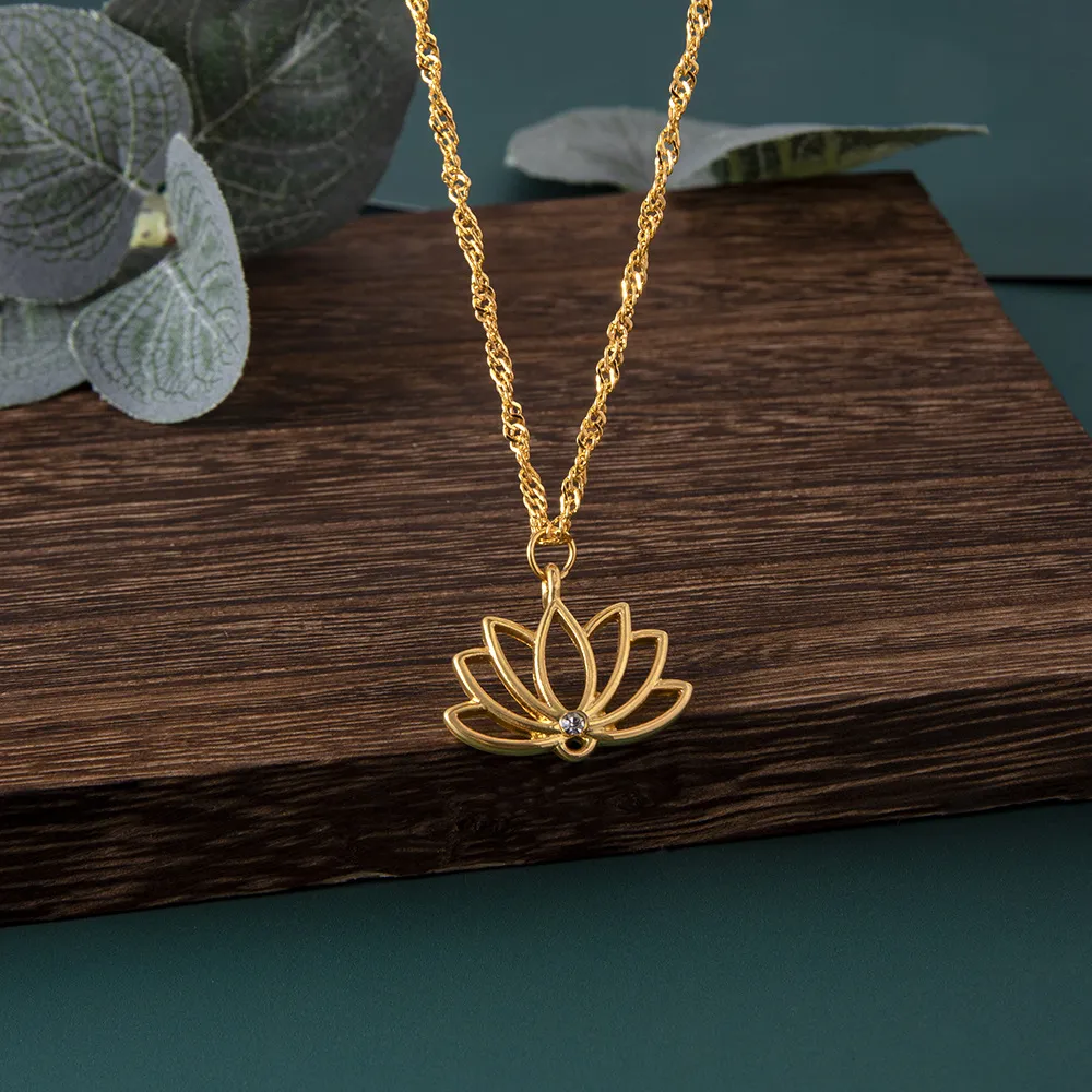 Necklace Ornament Fashion Simple Lotus Hollow Pendant Necklace Floral Lucky Pendant