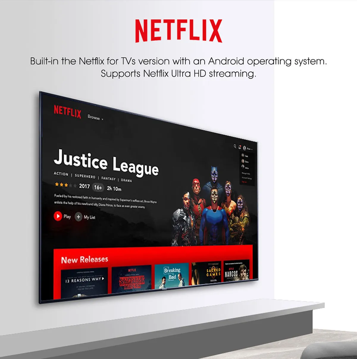 - Supports popular streaming platforms such as Netflix, YouTube, and Amazon Prime for easy content access.