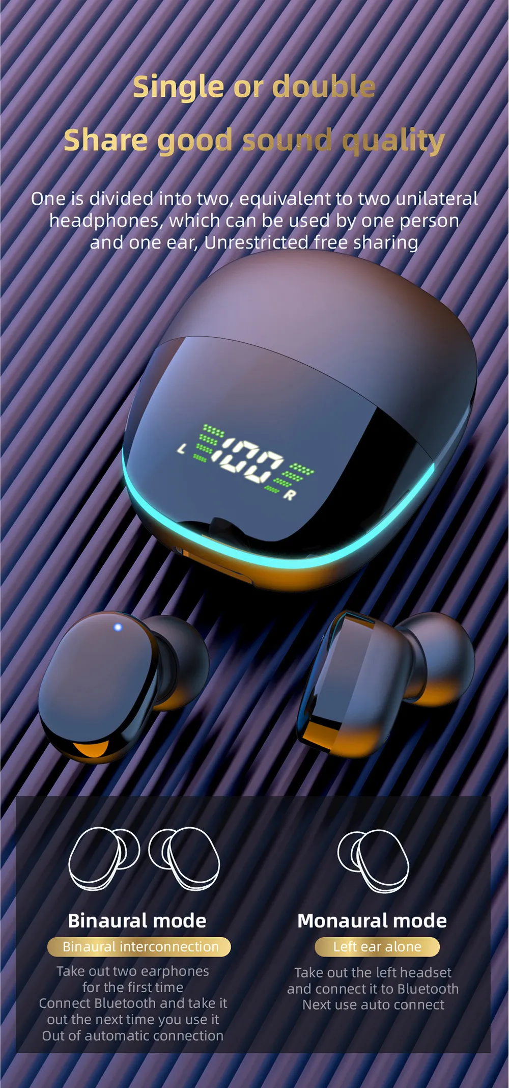 True wireless, binaural call 2. Digital battery display, 3, touch function 4. True copper ring speaker sound quality