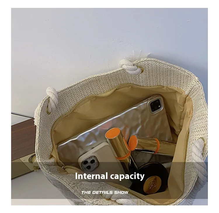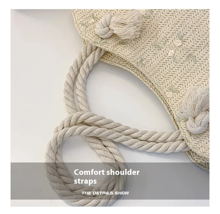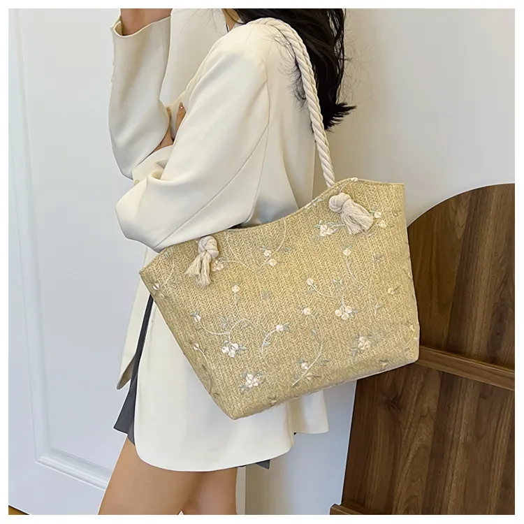 New And Simple Straw Bag Lace Bag Ins Straw Shoulder Bag Large Capacity Flower Fashion Women Handbag