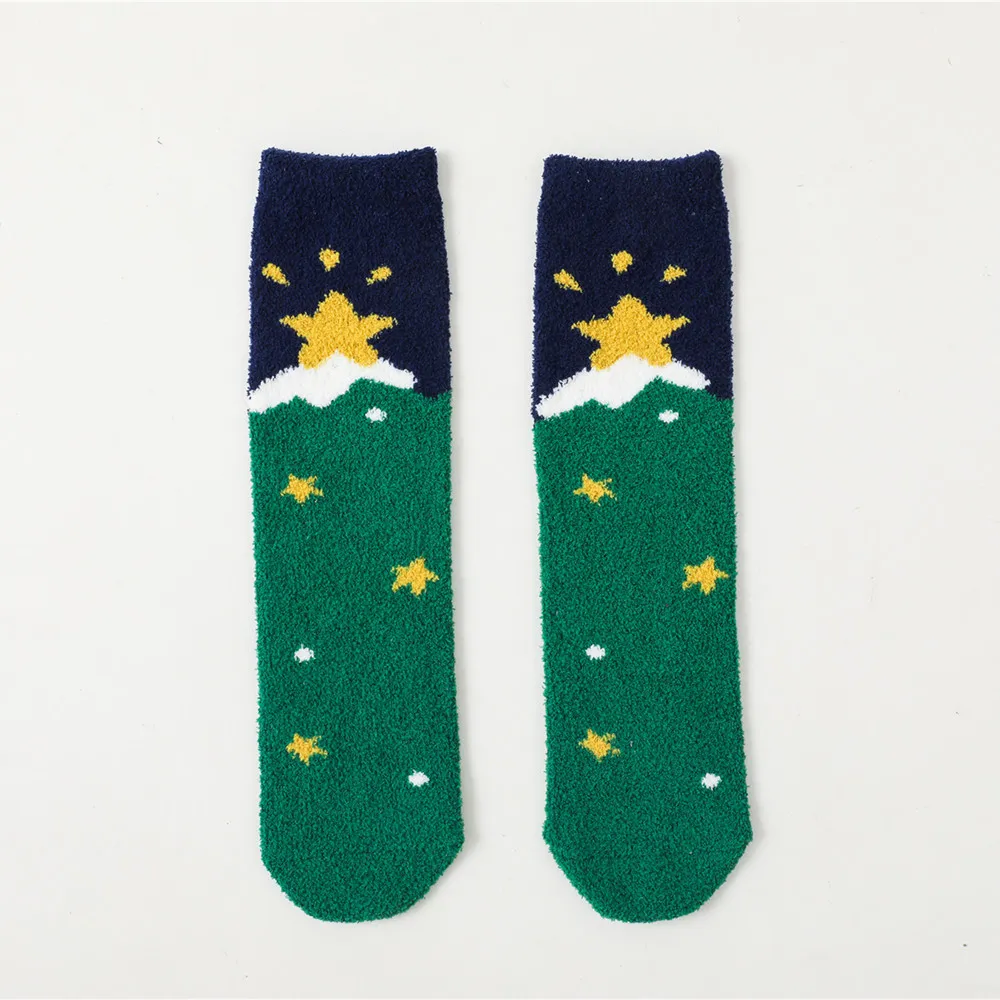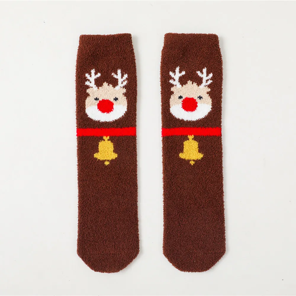 New Baby Christmas Cartoon Coral Velvet Stockings