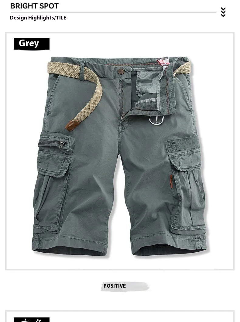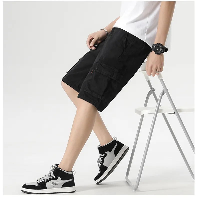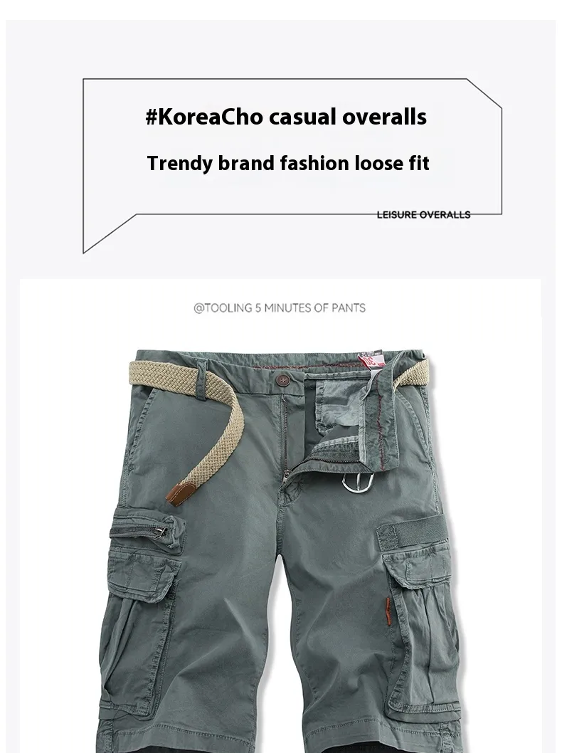 New Casual Pants Solid Color Multi-pocket Plus Size Fifth Pants
