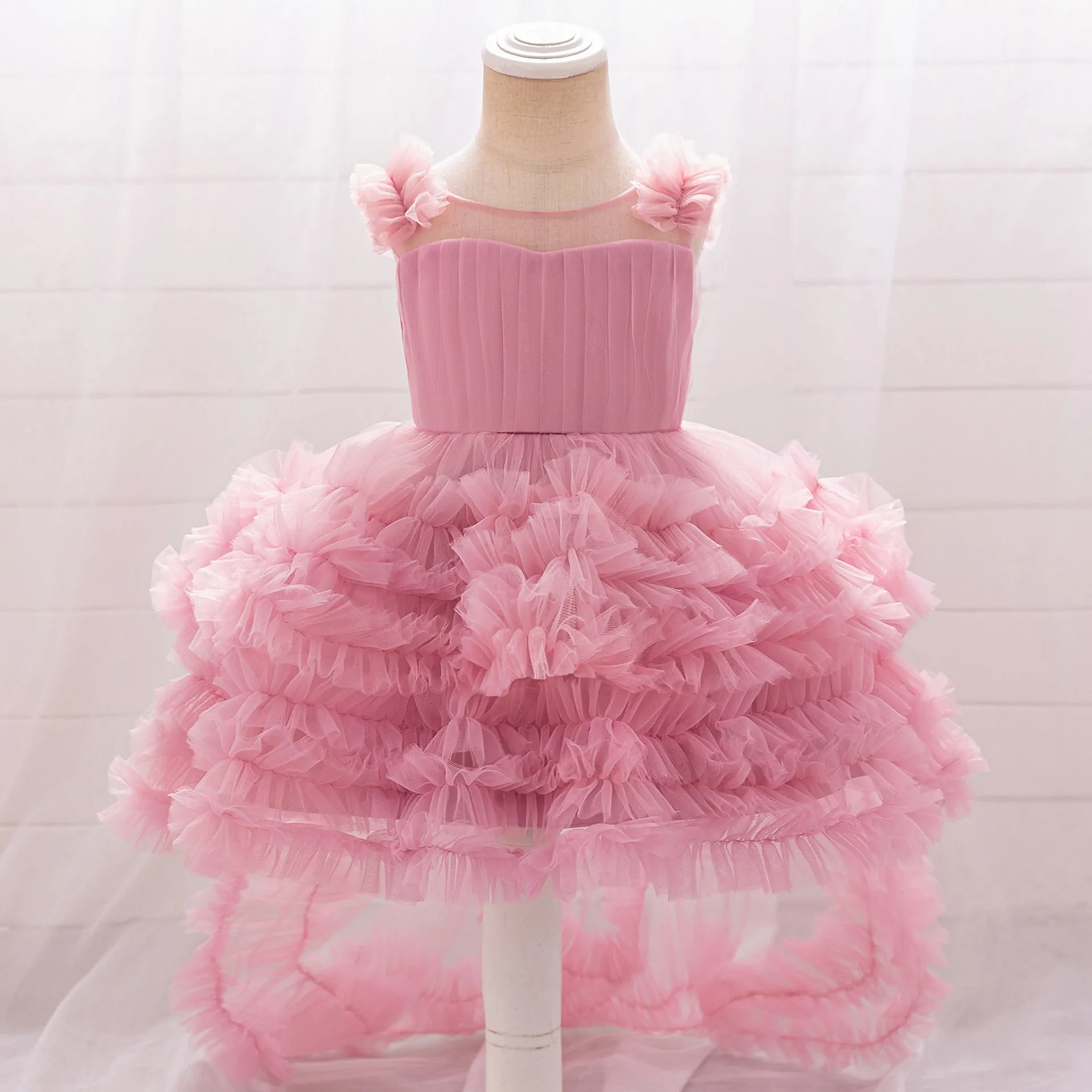 This dress is designed with a sleeveless cut, making it ideal for warm days or indoor events. The sleeveless style gives your child a