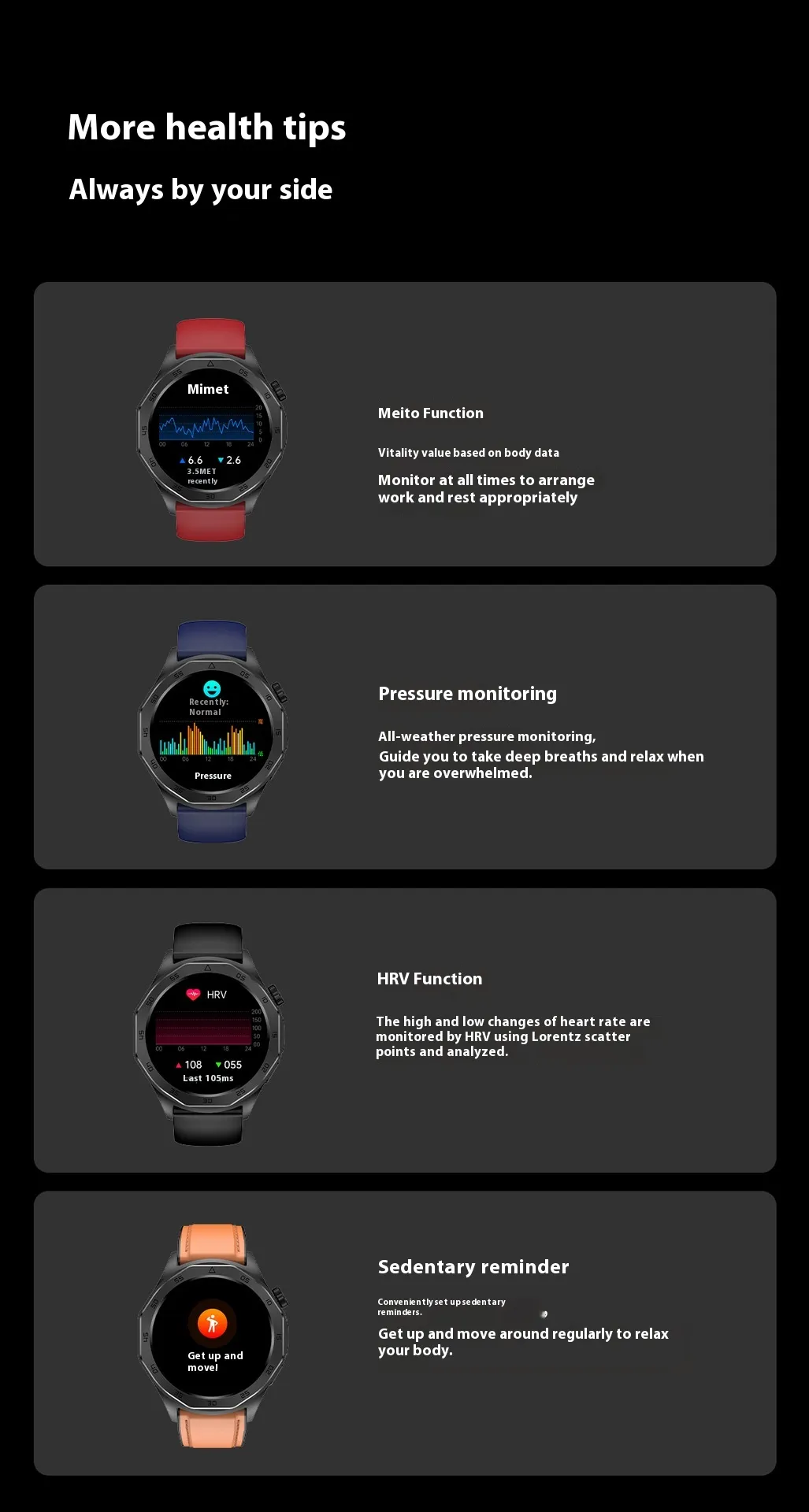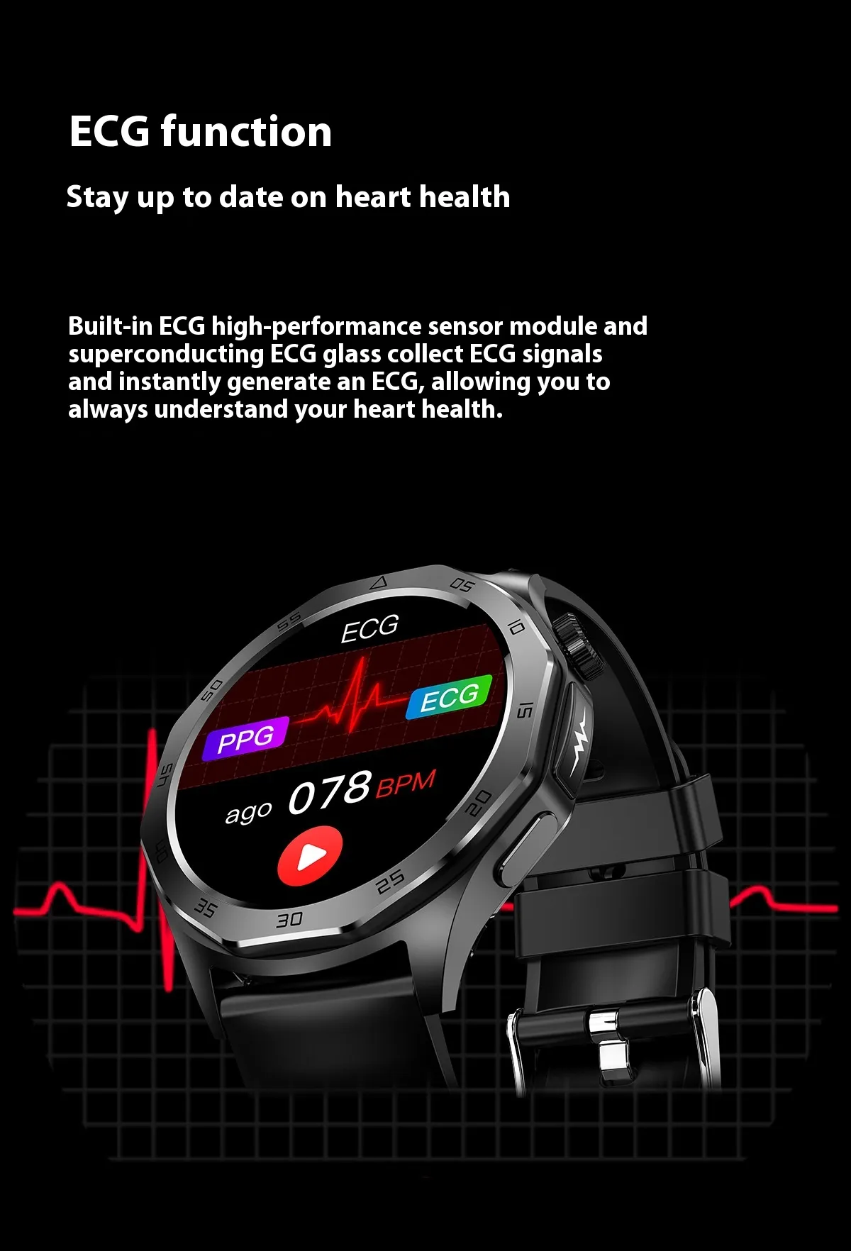 The ET480 offers a complete set of health-tracking features, including ECG, blood pressure, and blood glucose monitoring. These real-time measurements provide users with critical insights into their cardiovascular and metabolic health, helping them stay proactive about their well-being.