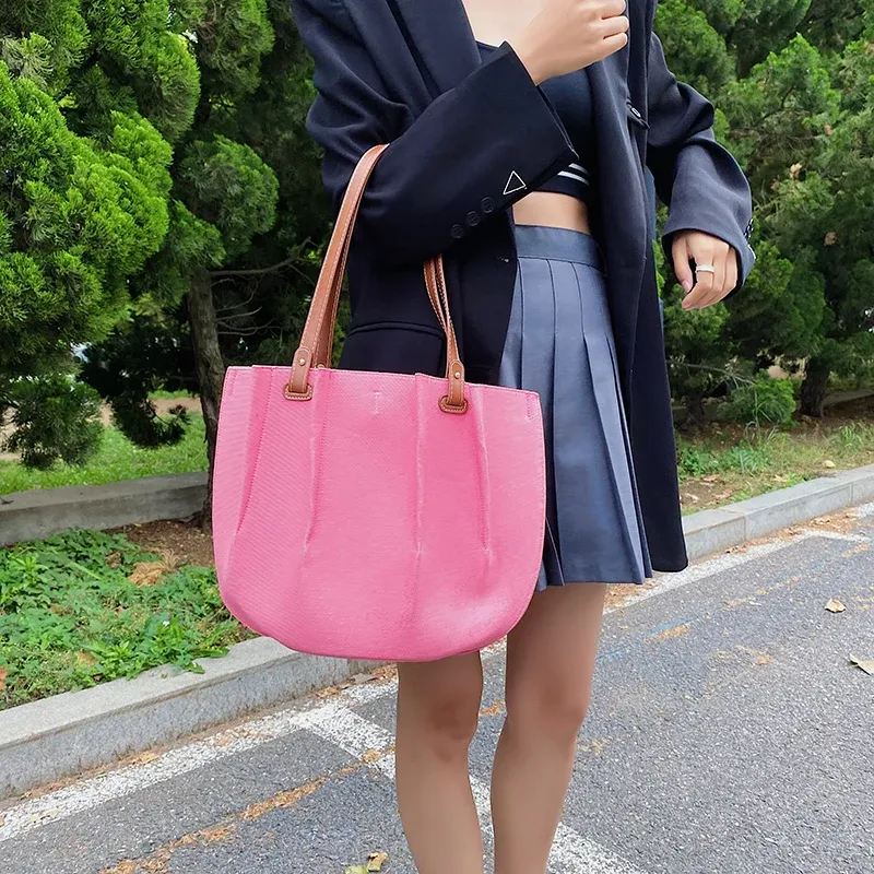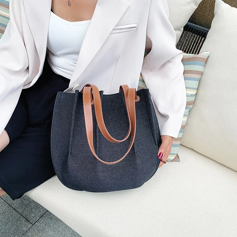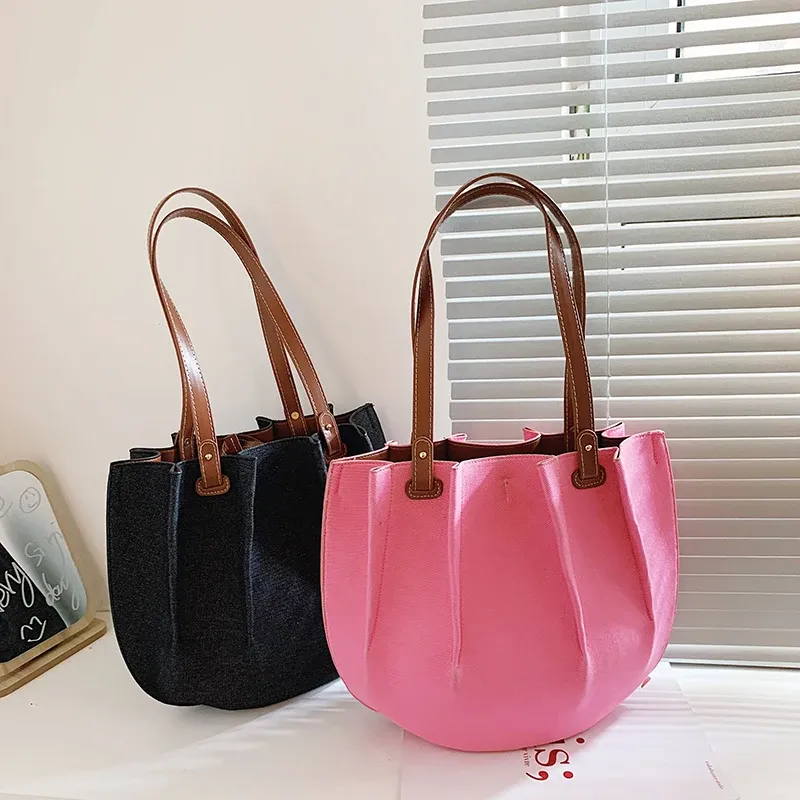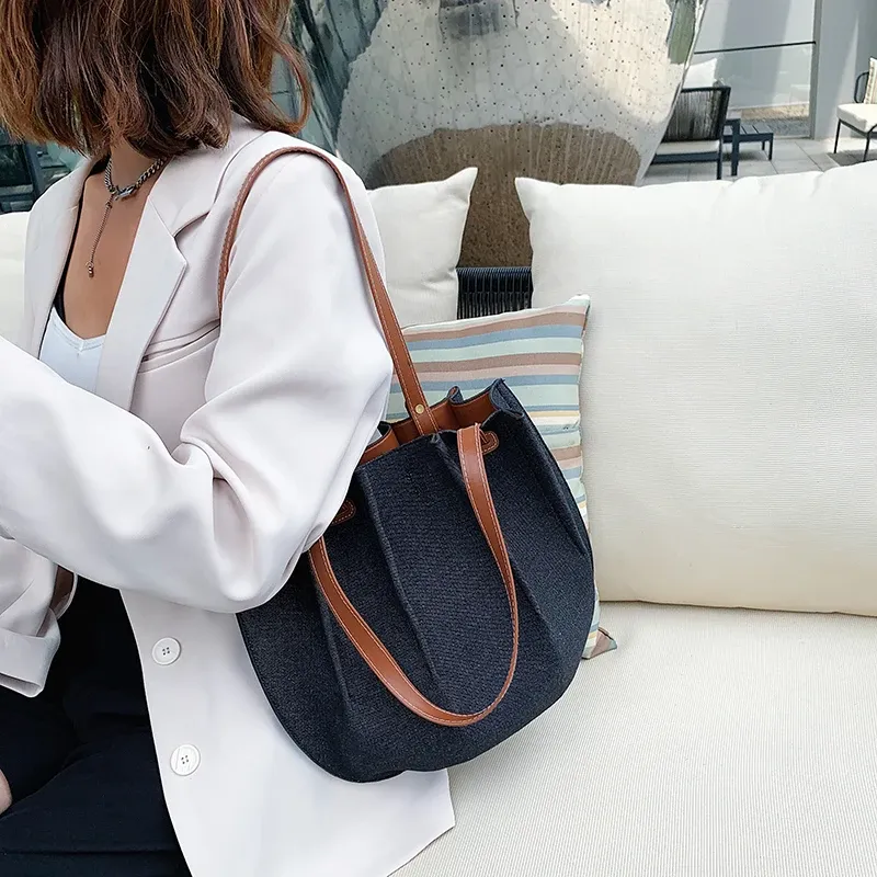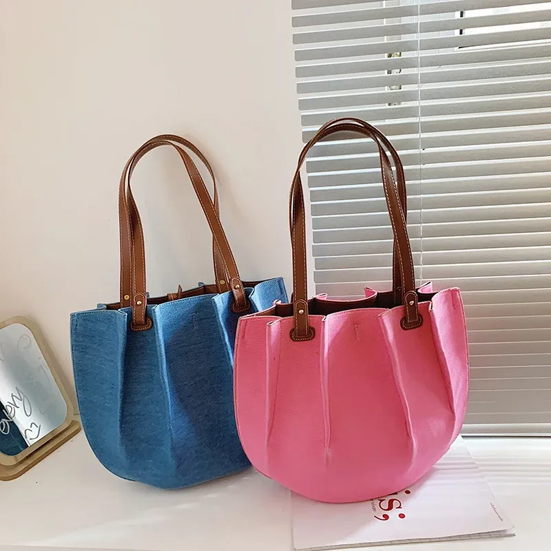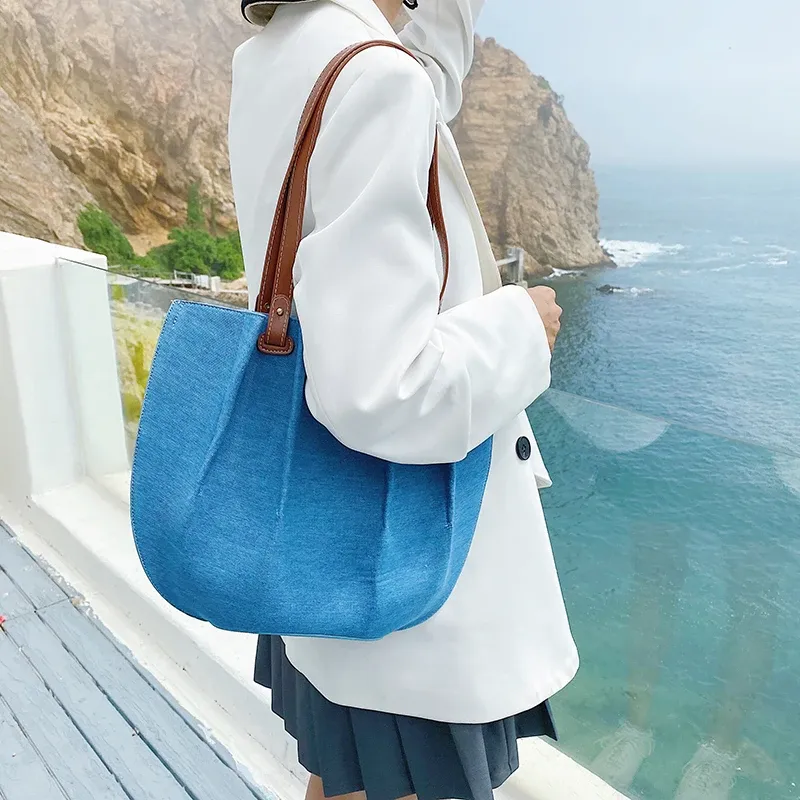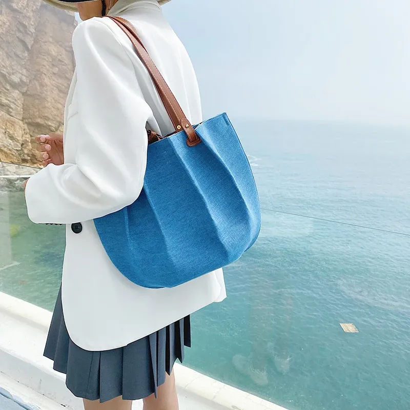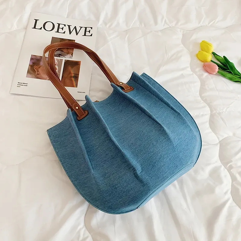 New Fashion Canvas Denim Pleated Tote Shoulder Bag