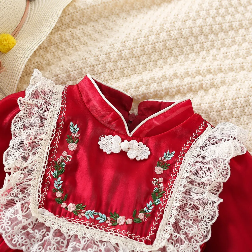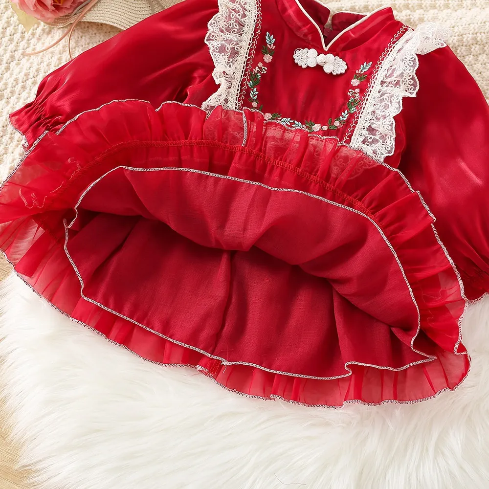 The New Girls Retro Princess Long Sleeve Dress is a timeless and elegant garment designed to make your little one feel like royalty. Inspired by vintage aesthetics, this dress features intricate lace detailing, puffed sleeves, and a flowing skirt, combining classic charm with modern comfort. Ideal for special occasions such as weddings, birthdays, or formal gatherings, this dress ensures your child stands out with grace and poise.