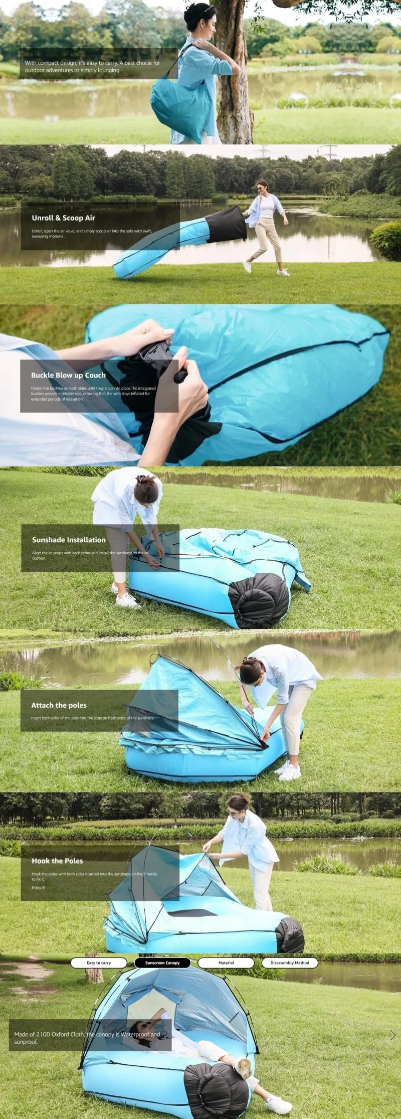 Forget the hassle of pumps or complicated setups. The New Inflatable Lazy Sofa Mattress inflates within minutes by simply swinging it through the air to fill it with air. No need for an air pump or excessive effort—just a few simple moves and you’re ready to relax. Whether you’re at the beach, in the park, or at a festival, you can have a comfortable lounge spot in no time.