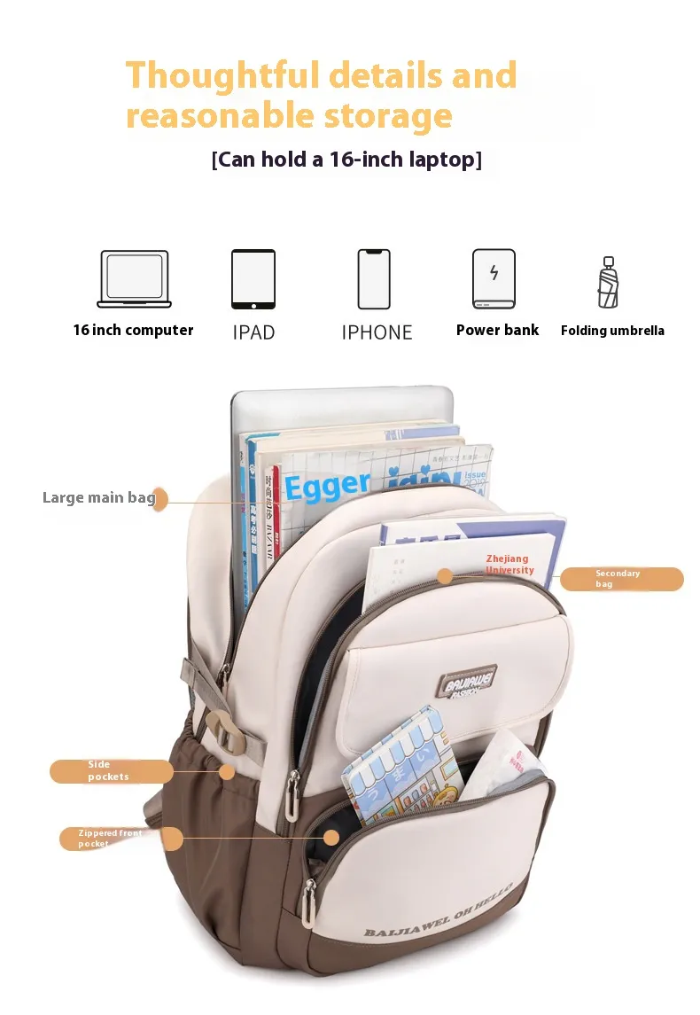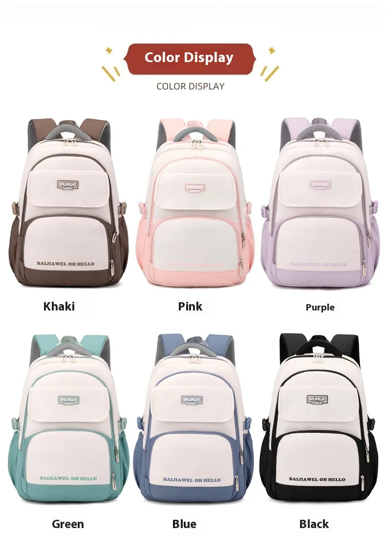 The New Junior High School Backpack Girls Super Light is the ideal combination of style, comfort, and functionality for young girls heading to school. Designed with a super-lightweight structure, this backpack ensures that your child can carry all their essentials with ease, without the burden of heavy bags. Perfect for junior high school students, it features spacious compartments, ergonomic straps, and a trendy design that makes it a practical and fashionable accessory for school and daily activities.