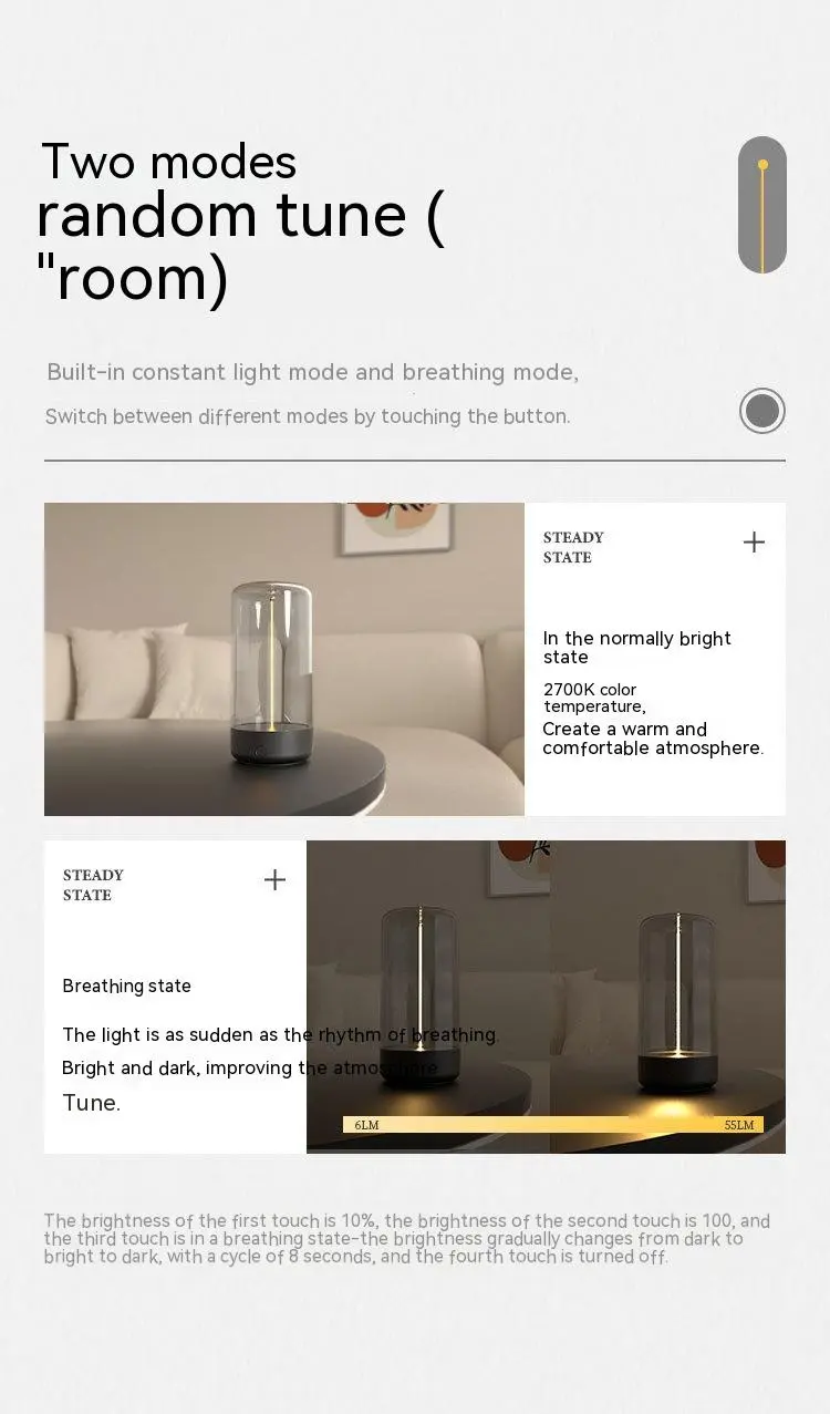 In addition to its practical lighting function, the lamp features a creative atmosphere mode, providing soft, colorful light that can