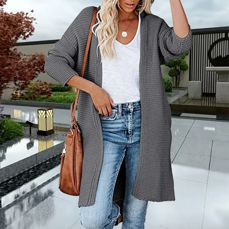 New Medium Long Knitting Cardigan Sweater Is Casual And Loose