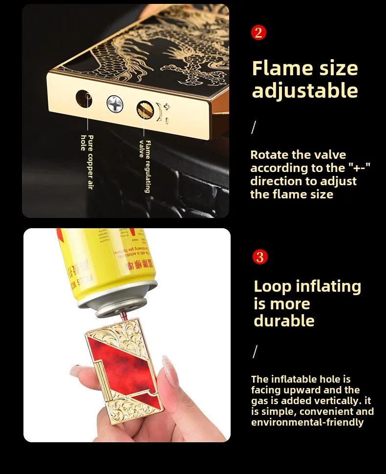 The metal retro design adds a sense of elegance and style to this lighter. The polished finish and smooth lines give it a luxurious look, making it a great conversation piece. Whether you're a collector or simply want a stylish lighter to match your personality, this product offers a perfect blend of function and fashion.