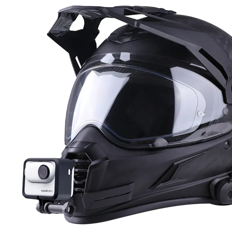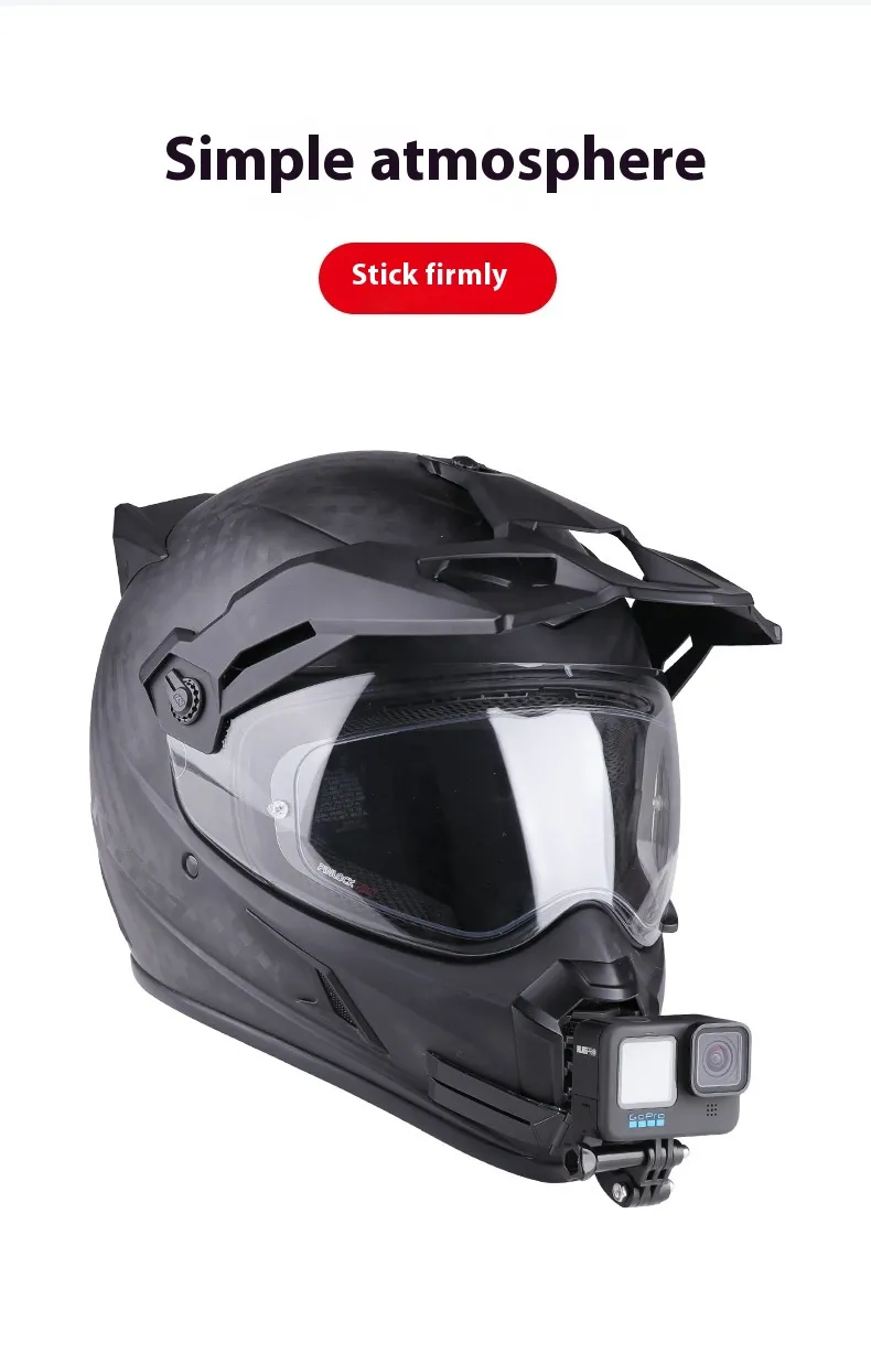 The motorcycle helmet chin mount provides a secure and stable platform for attaching action cameras like GoPro, DJI Osmo, or any camera with compatible mounts. Its design ensures that your camera stays in place even in the toughest riding conditions, preventing unwanted movements or dislodging.