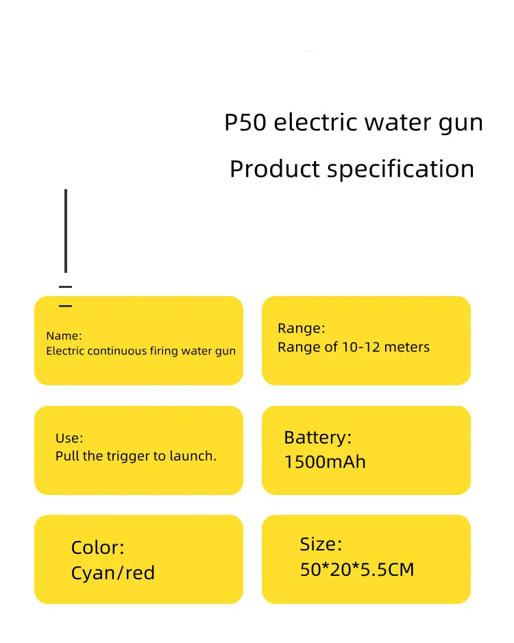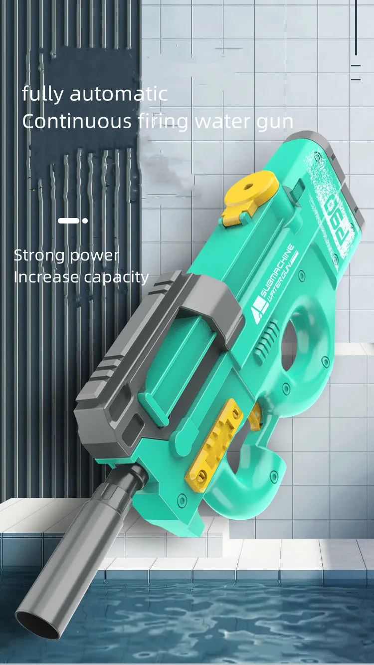 The P90 Electric Water Gun is designed to shoot water with high pressure, allowing it to cover long distances. Whether you’re aiming for