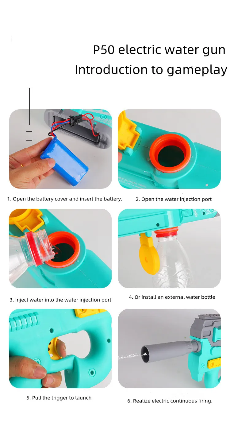 traditional water guns that require manual pumping to build pressure, this electric water gun allows you to easily fire water with the press