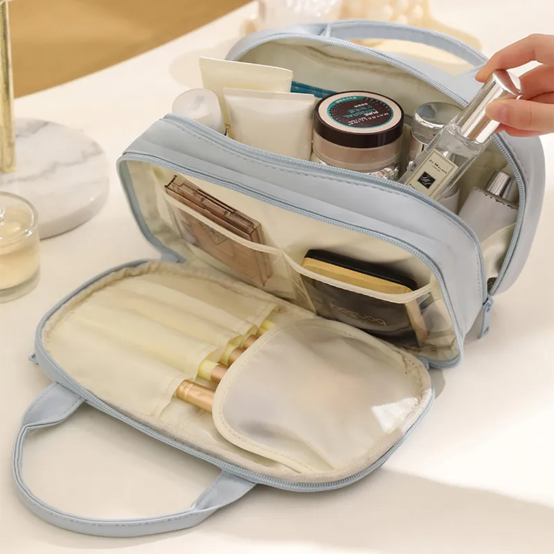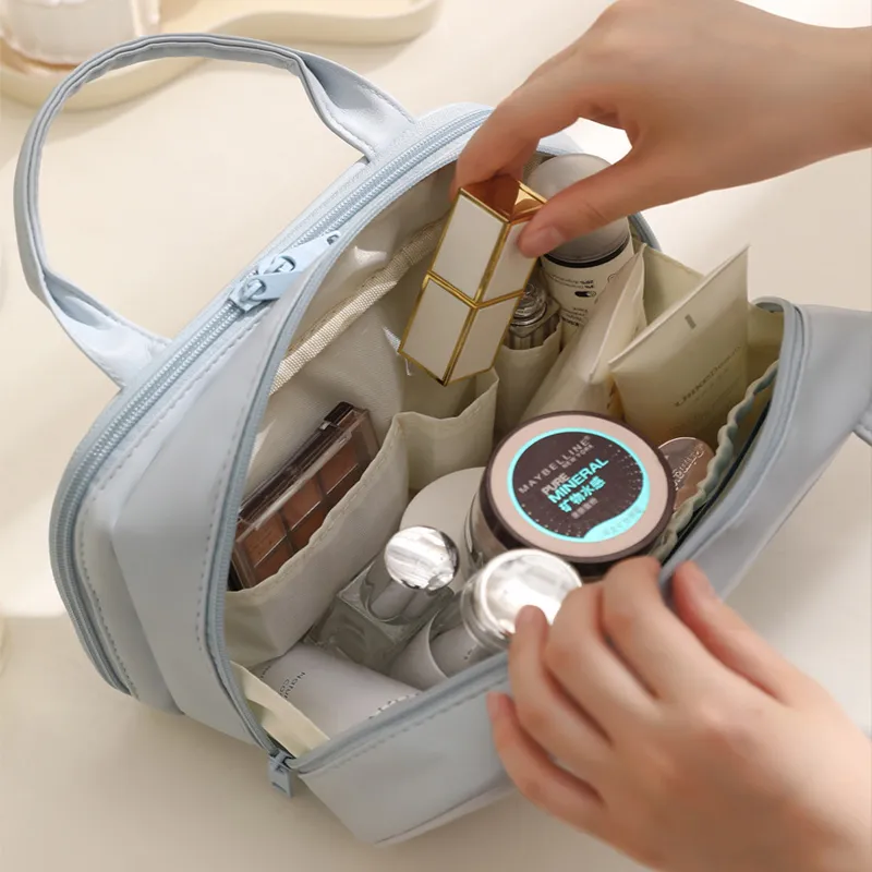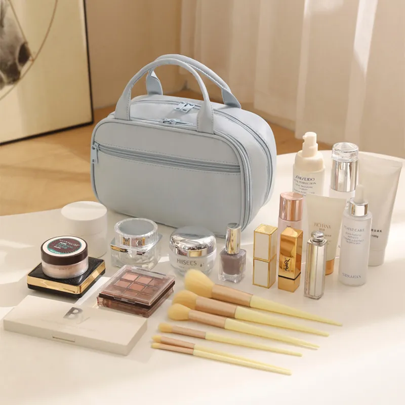 Travel in style and stay organized with the New Portable Cosmetic Bag With Handle, designed for women who love to keep their beauty essentials, toiletries, and personal items neatly stored. Whether you're on a business trip, vacation, or weekend getaway, this multifunctional travel bag makes it easy to carry all your makeup, skincare, and toiletries in one place, ensuring you have everything you need at your fingertips.
