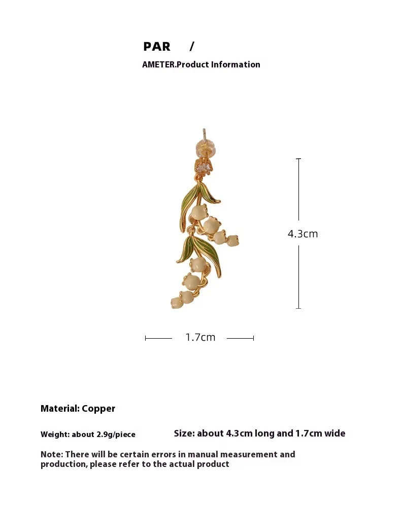 Product Description: New Retro Temperament Lily Long Enamel Earrings for Women