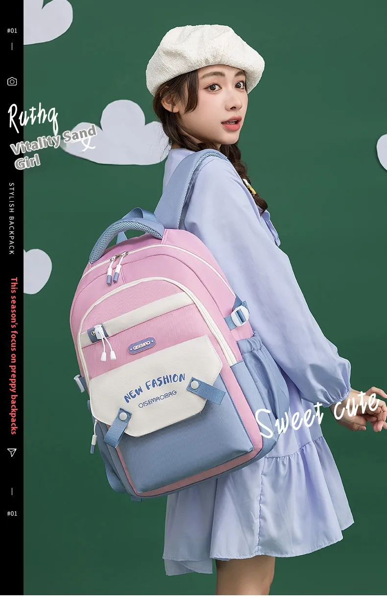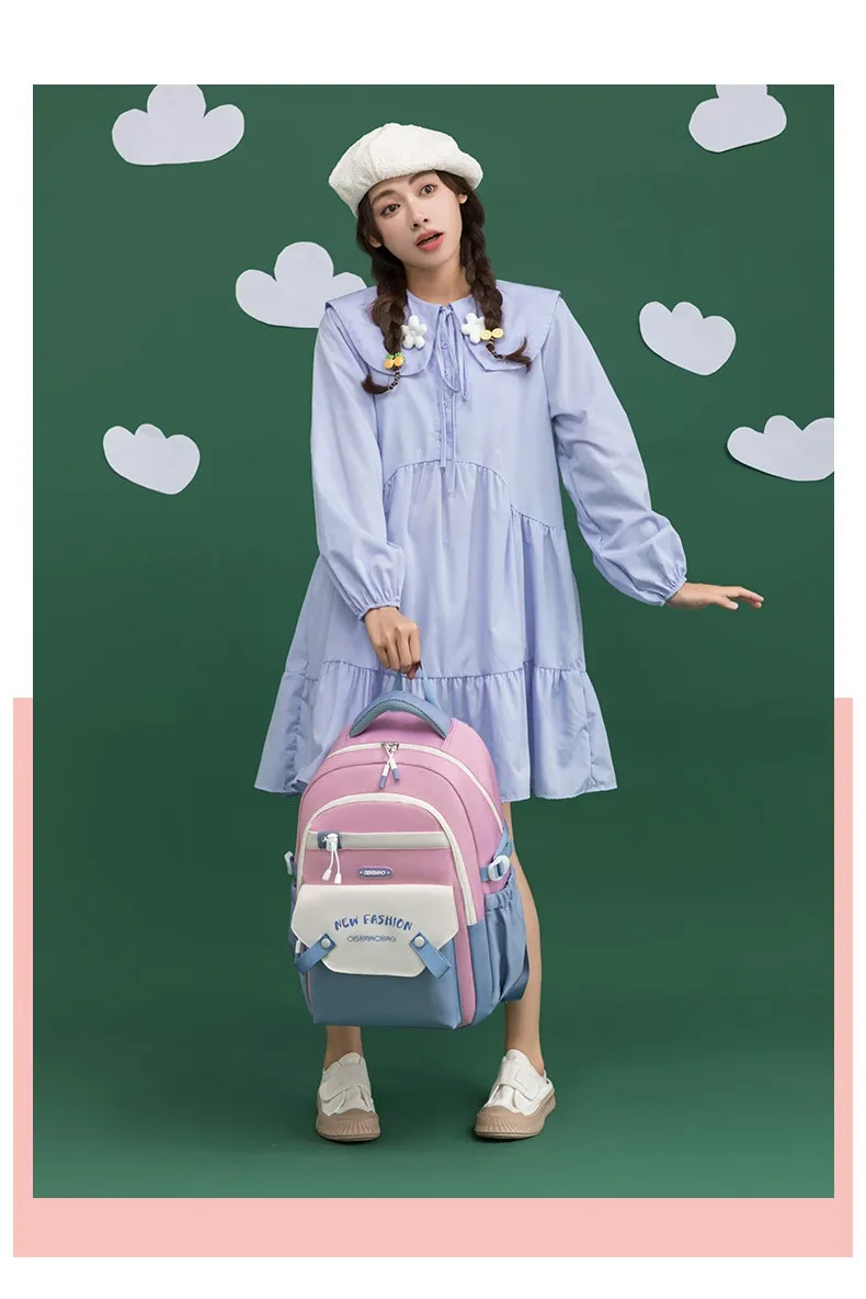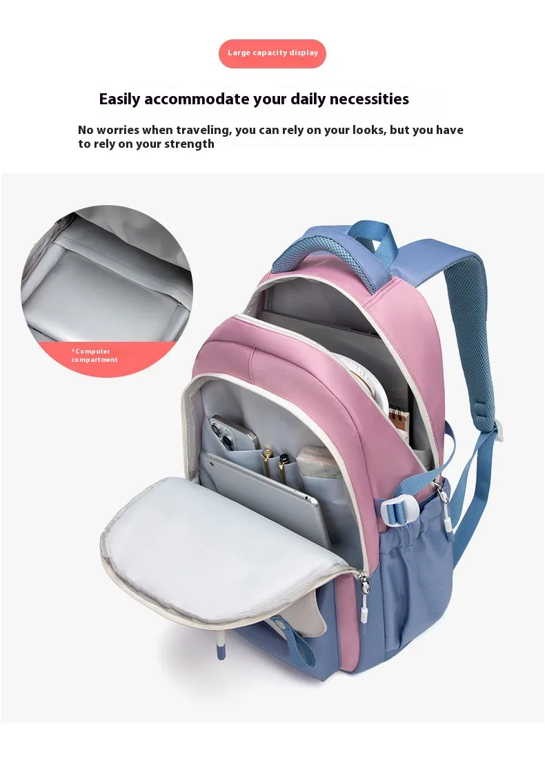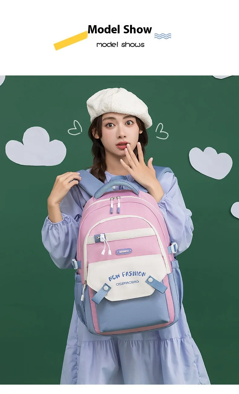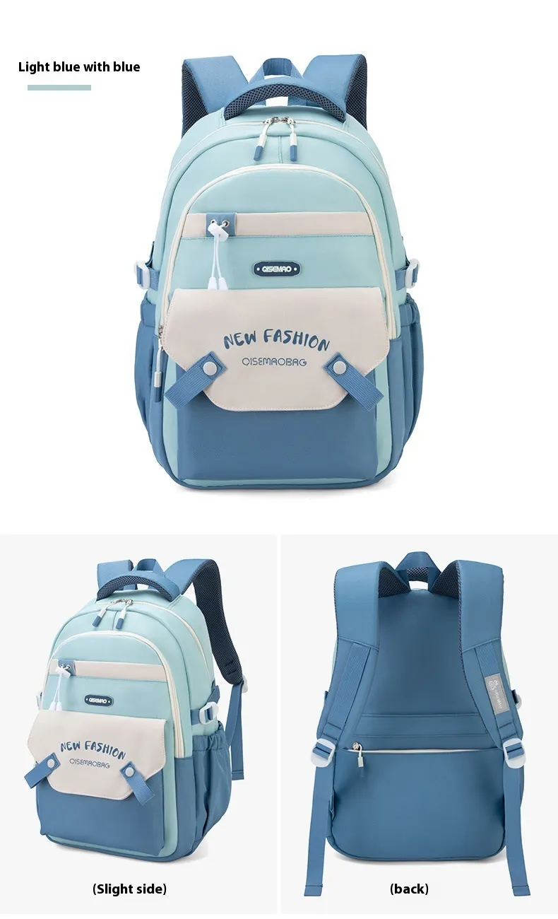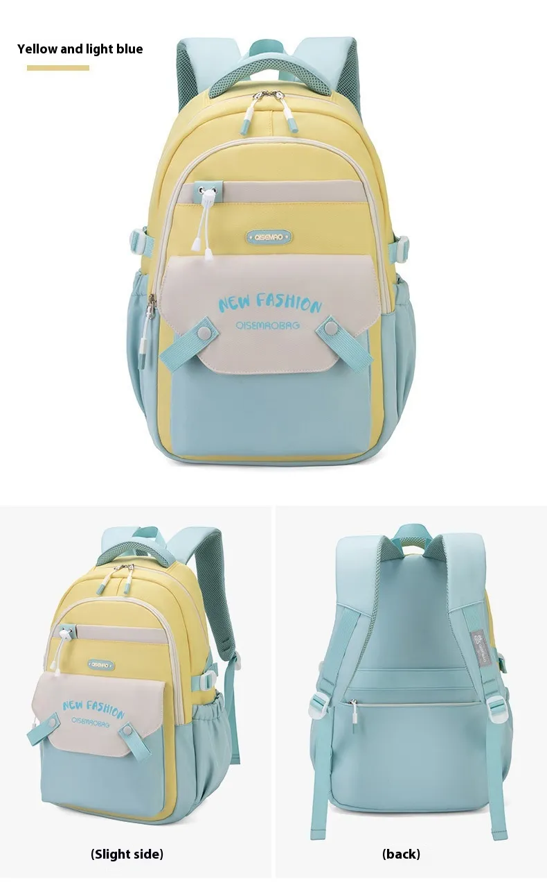 Made from high-quality, durable materials, this schoolbag is built to withstand the wear and tear of daily use. The sturdy zippers and reinforced stitching ensure that the bag can handle heavy loads, while the soft yet supportive straps are adjustable for a comfortable fit. Whether you’re carrying light or heavy loads, the New Student Colorful Contrast Color Schoolbag is designed to keep you comfortable throughout the day, with an ergonomic design that helps distribute weight evenly.