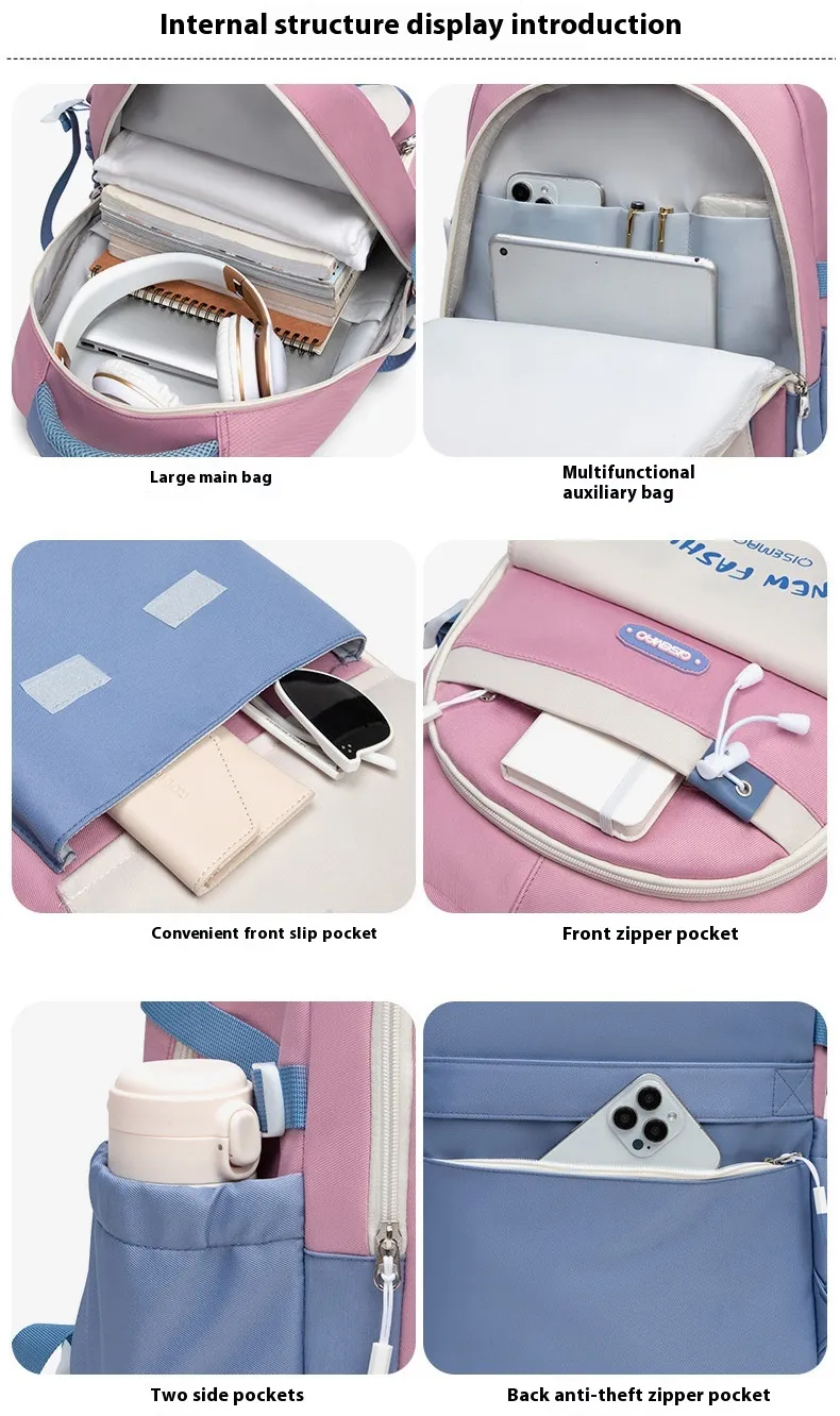 Product Name: New Student Colorful Contrast Color Schoolbag – Trendy and Functional Backpack for Students