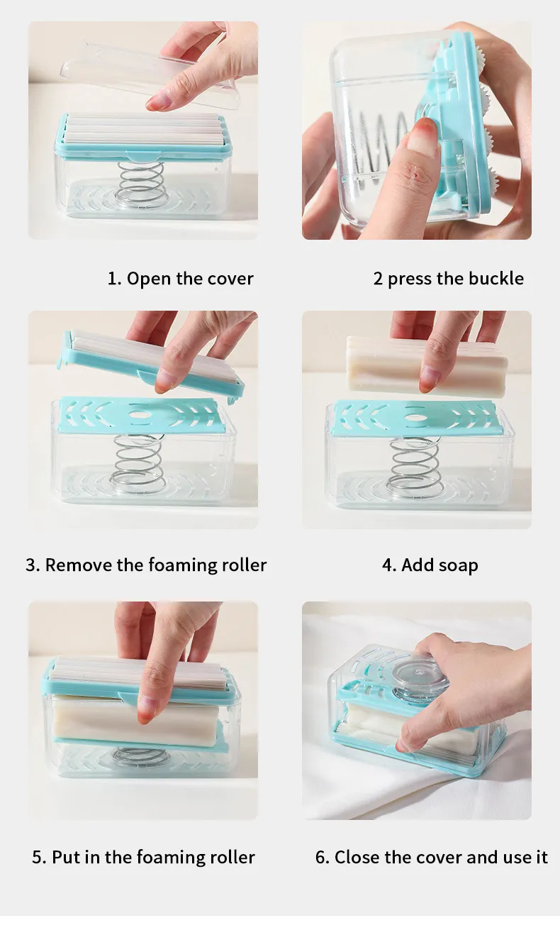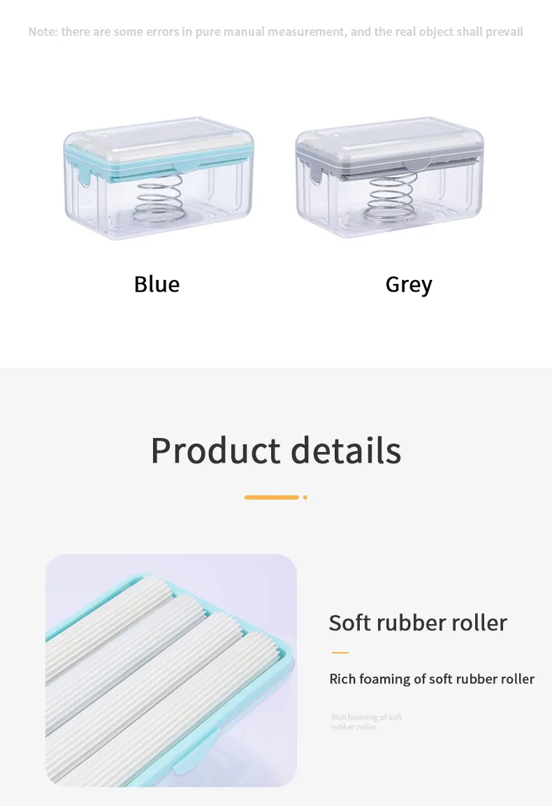 Easy to Use: Open the lid and put the soap between the spring base and the sponge roller.