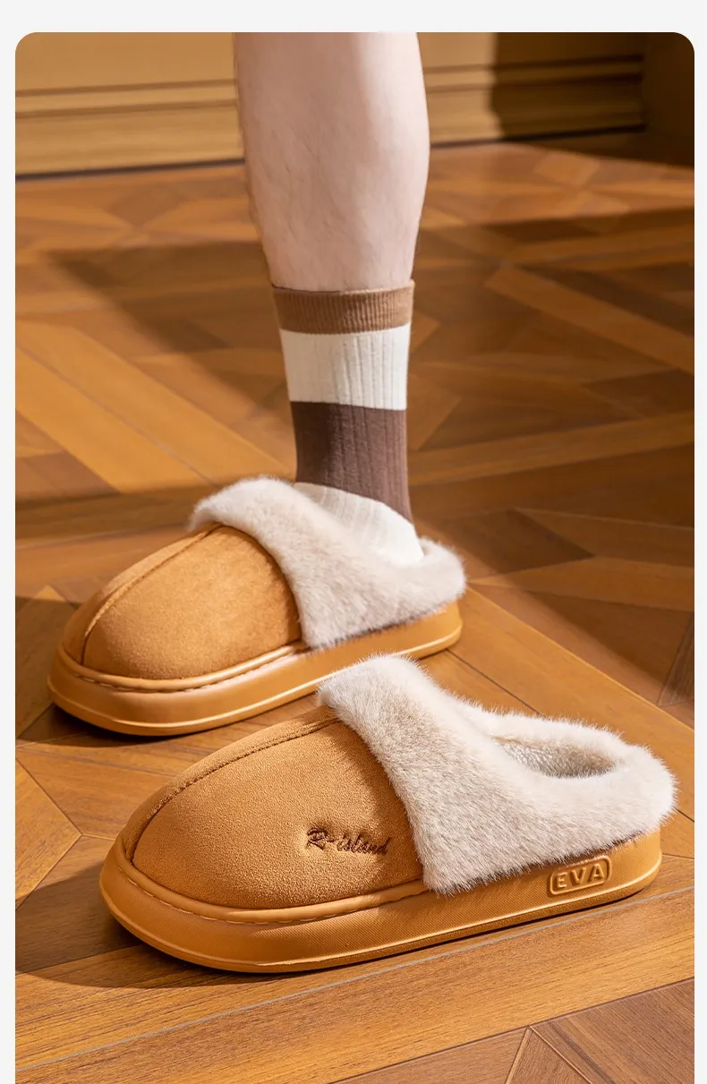 New Winter Cosy Warm Couple Style Concise Fluffy Slippers Women Men Non-slip Soft Slides Indoor Mule Ladies' Home Cotton Shoes
