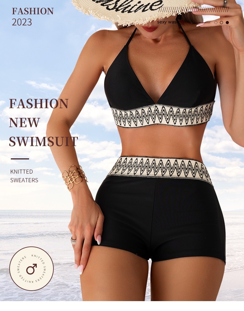 New Women's High Waist Pure Color Boxers Split Swimsuit
