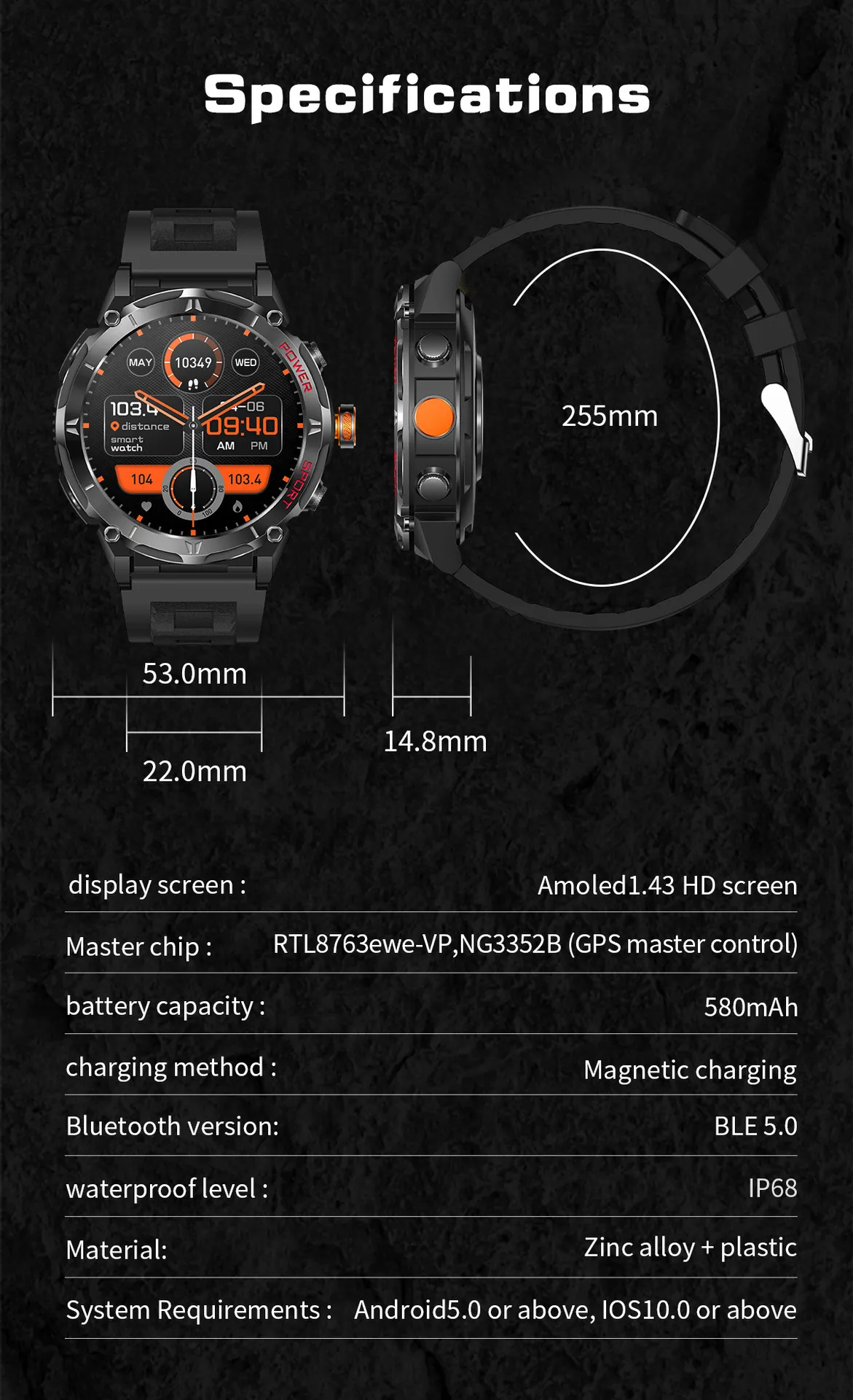 - 1.43-Inch HD Display: Clear, vibrant visuals for easy navigation and tracking.