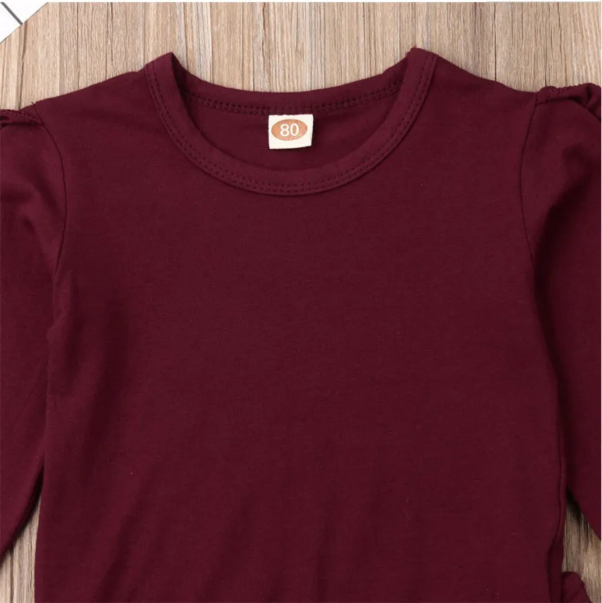 Available in a variety of fall-inspired colors, the Newborn Baby Ruffles Jumper Outfit is the perfect choice for autumn outings, family gatherings, or casual wear. The simple, solid design makes it easy to accessorize with hats, socks, or jackets for those chillier days.