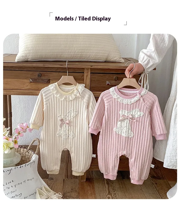 The Newborn Baby Lace Collar Long Sleeve Romper features long sleeves, providing extra warmth and comfort during cooler months. The soft, breathable fabric ensures that your baby stays cozy without feeling too hot, making this romper versatile enough for both chilly and moderate temperatures. The long sleeve design also makes it ideal for layering with jackets or cardigans when necessary.