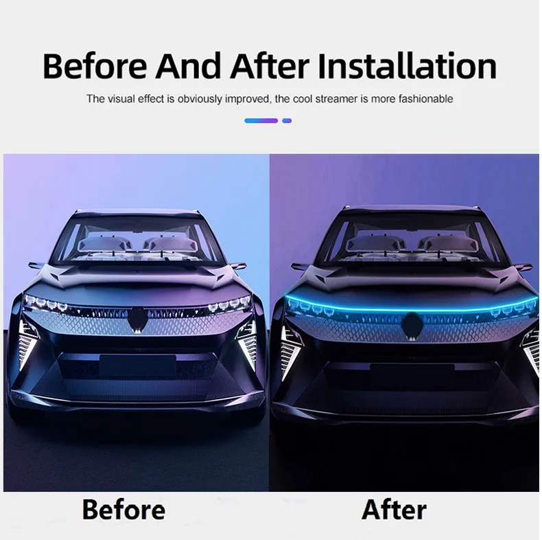The LED Car Hood Light isn’t just about looks; it’s also a safety enhancement. The bright DRL and turn signal features increase your car’s visibility to other drivers, reducing the risk of accidents. The dynamic lighting effects make your signals stand out, ensuring that your intentions are clearly communicated on the road.