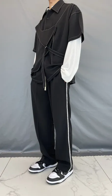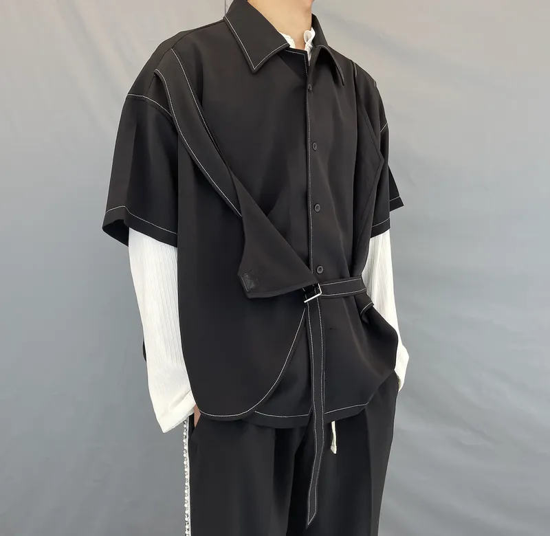 Niche Black Vest Casual Short-sleeved Shirts For Men And Women