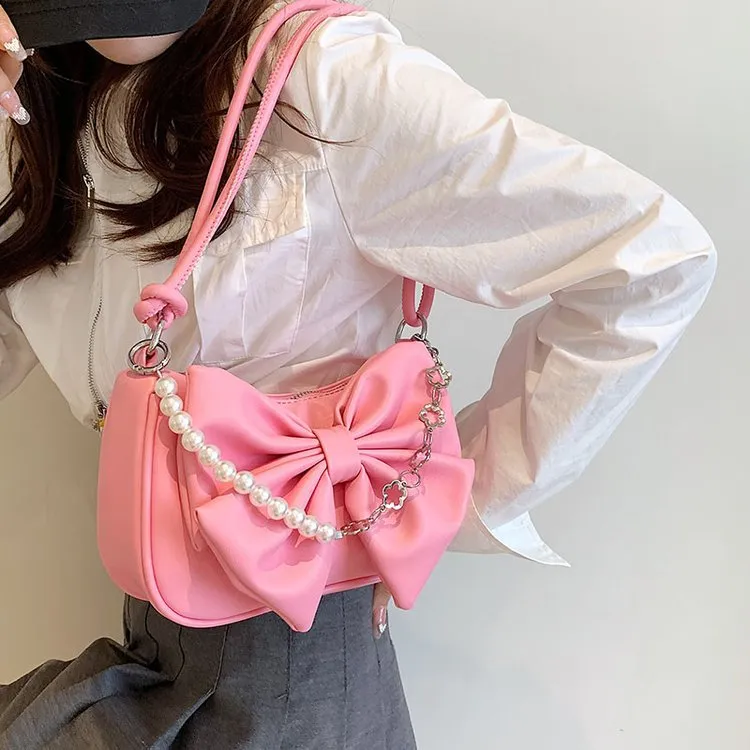 Niche Crossbody Texture Chain Bow Shoulder Bag