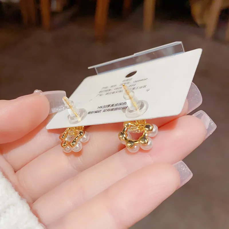 Color: Micro inlaid pearl Zircon stud earrings (thick gold plated)