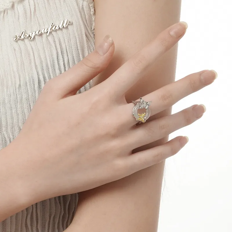 Niche Sterling Silver Color Matching Butterfly Ring Female Opening