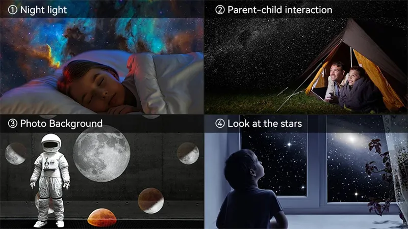 - Realistic Galaxy Effects: Projects vibrant galaxies, stars, and celestial patterns for a magical ambiance.