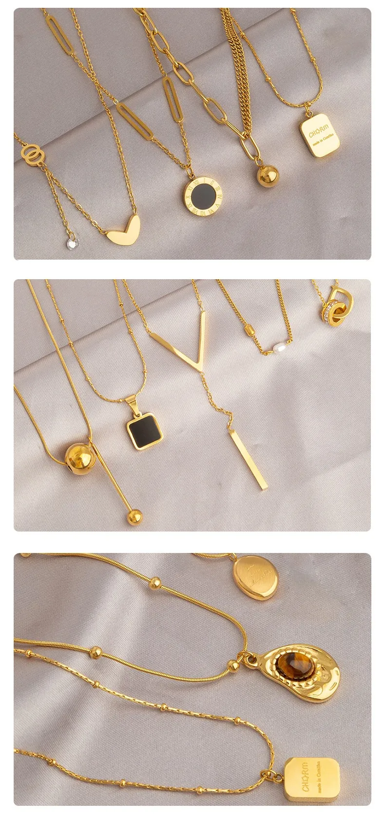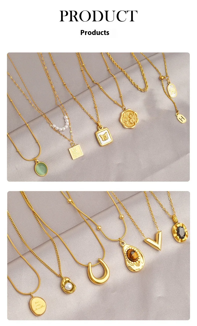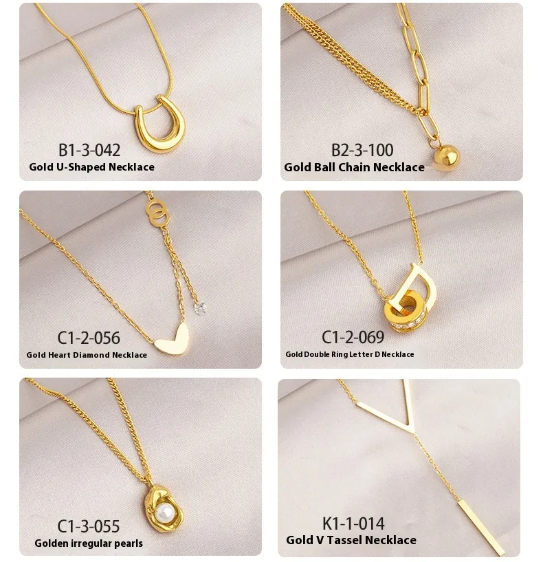 green water drop necklace, gold mirror rose necklace, gold U-shaped pearl necklace, gold Pisces ball necklace, gold Black for Men letter