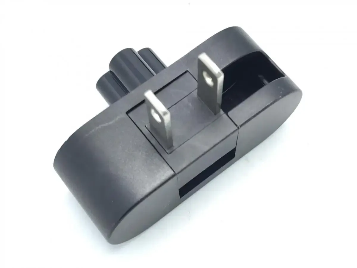When not in use, the plug can be folded and stored in the body. The plug can be converted into two forms, straight out or 90 degree out,