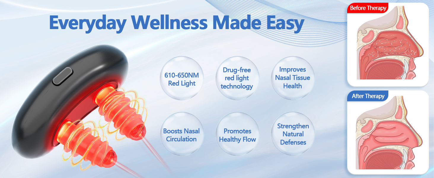 - Promotes Clear, Comfortable Breathing – Support nasal comfort during seasonal changes with red light nasal therapy. Designed for use as red light therapy at home, this device helps promote a clear, comfortable nasal feeling—especially in dry environments or after exposure to everyday irritants.