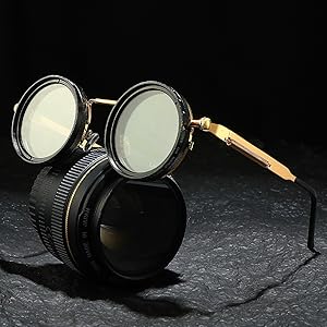 - 4. Victorian-Tech Aesthetics Artisan-crafted with watch movement-inspired side shields and monocle-inspired single-lens flip mechanism. Available in Copper Cog/Smoke Gear/Obsidian Steam color schemes.