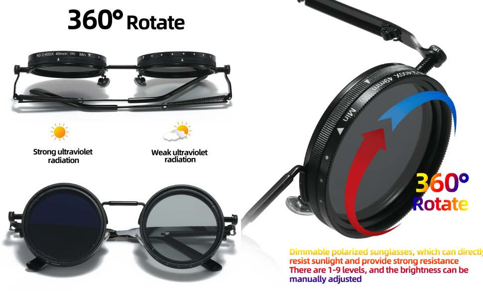 SEE FOR YOURSELF✅ Dimmable polarized lenses with 1-9 speed manual adjustment, allowing you to adjust the brightness in different lighting conditions, plus a 360-degree rotating design!✅ High-precision ND high-definition lenses, blocking 99% of UV rays to protect your eyes!